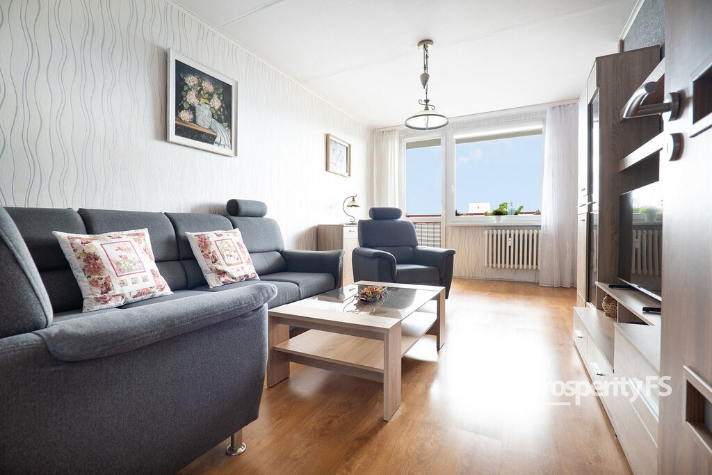 Ve výhradním zastoupení nabízíme tento prostorný byt o dispozici 3+1 s výměrou 68,2 m², lodžií o výměře 6,4 m² a sklepní kójí.