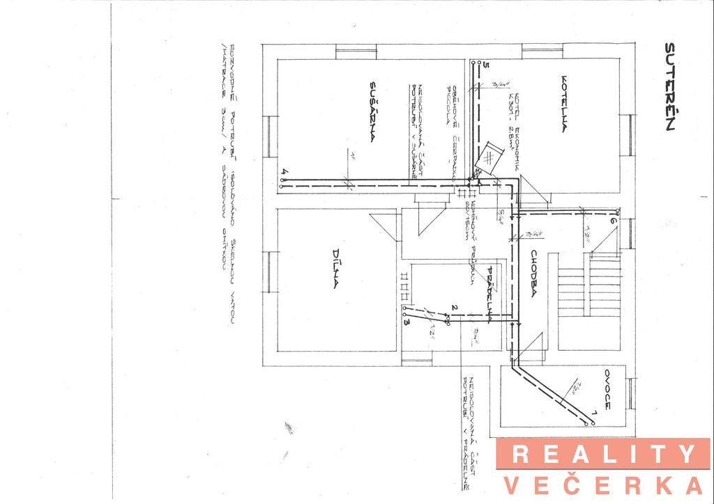 Dům je podsklepený, nachází se zde kotel na dřevo s příslušenstvím, bojler na teplou vodu, prádelna a skladové prostory.