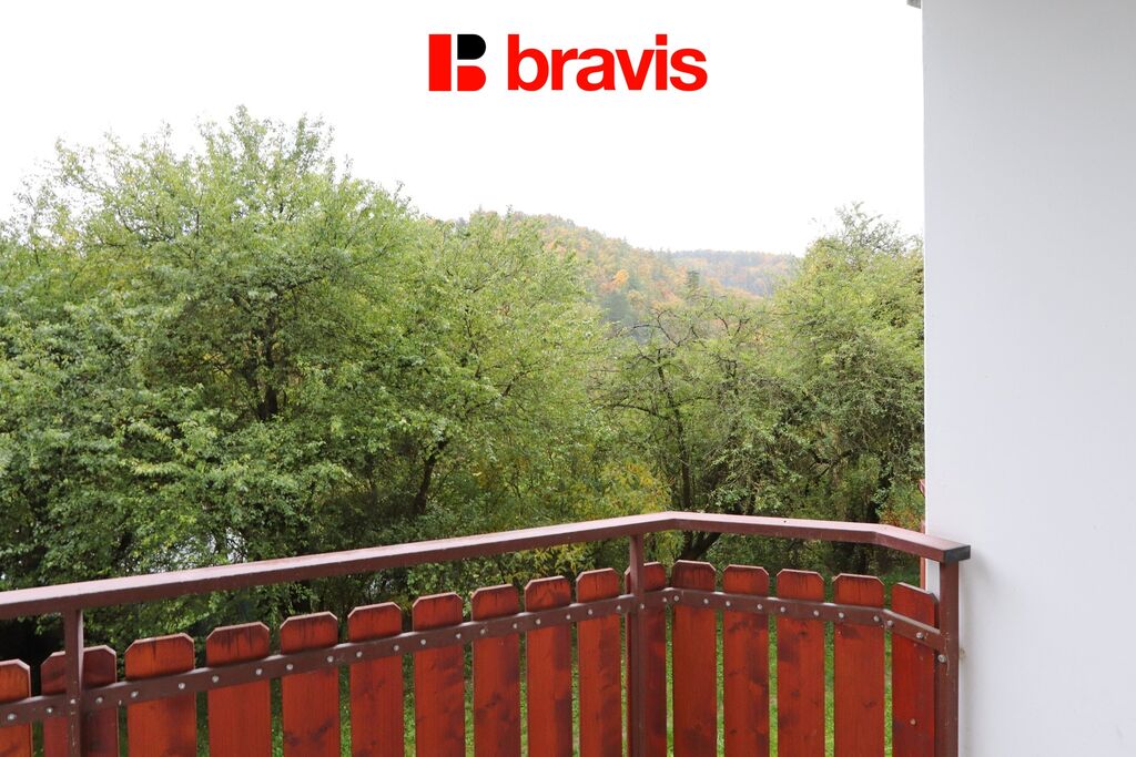 Plocha bytu činí 33 m2 a je vybaven balkonem s výhledem na les.