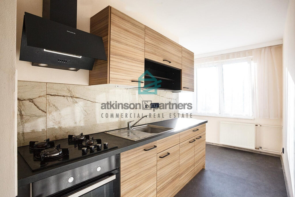 Dispozice: předsíň, obývací pokoj orientovaný na východ, dvě ložnice a kuchyně orientované na západ, koupelna, samostatné WC a balkon. K bytu náleží sklepní kóje (cca 1,5 m²).