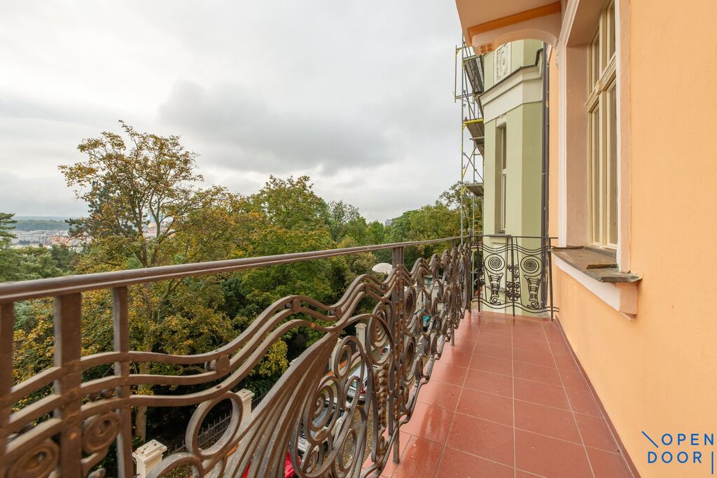 Nabízíme pronájem krásného, částečně zrekonstruovaného bytu o dispozici 3+1 se dvěma balkony, 120 m2, ve druhém patře stylového vinohradského domu v ulici U Havlíčkových sadů.