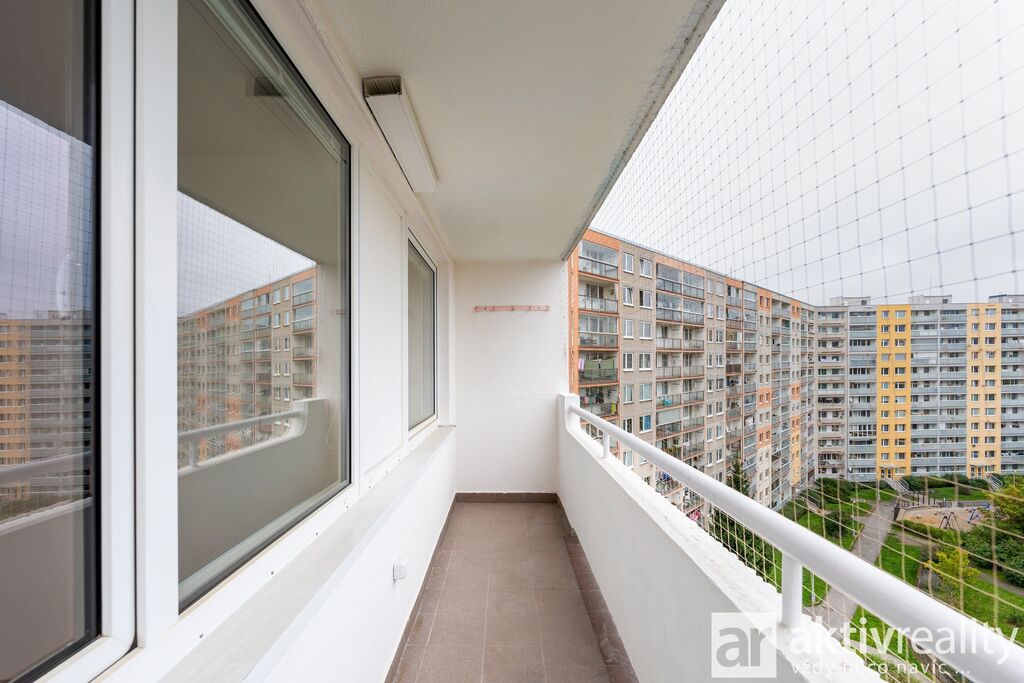 Součástí bytu je prostorná lodžie orientovaná do vnitřního bloku sídliště s pěkným výhledem a sklep.