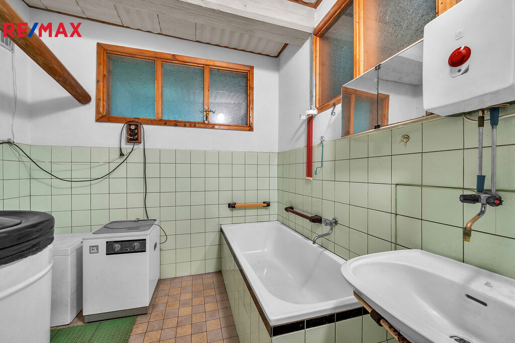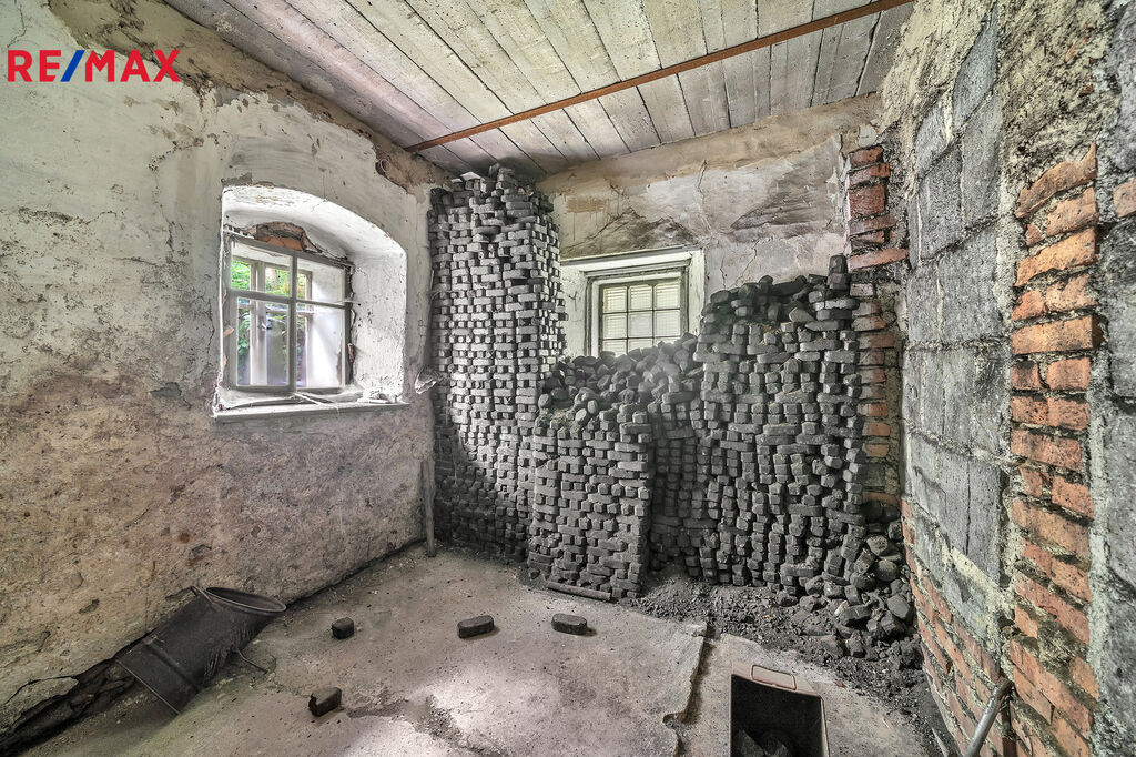 V podkroví se nachází velká velmi světlá obytná místnost a další 3 menší pokojíčky. Chalupa je podsklepená.