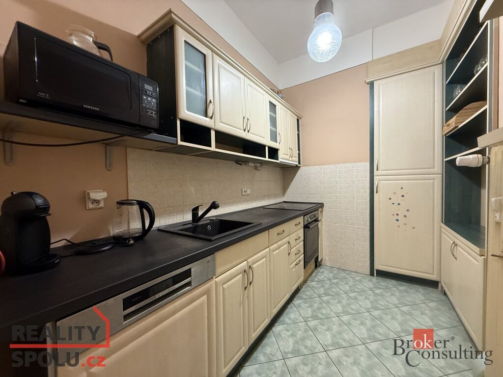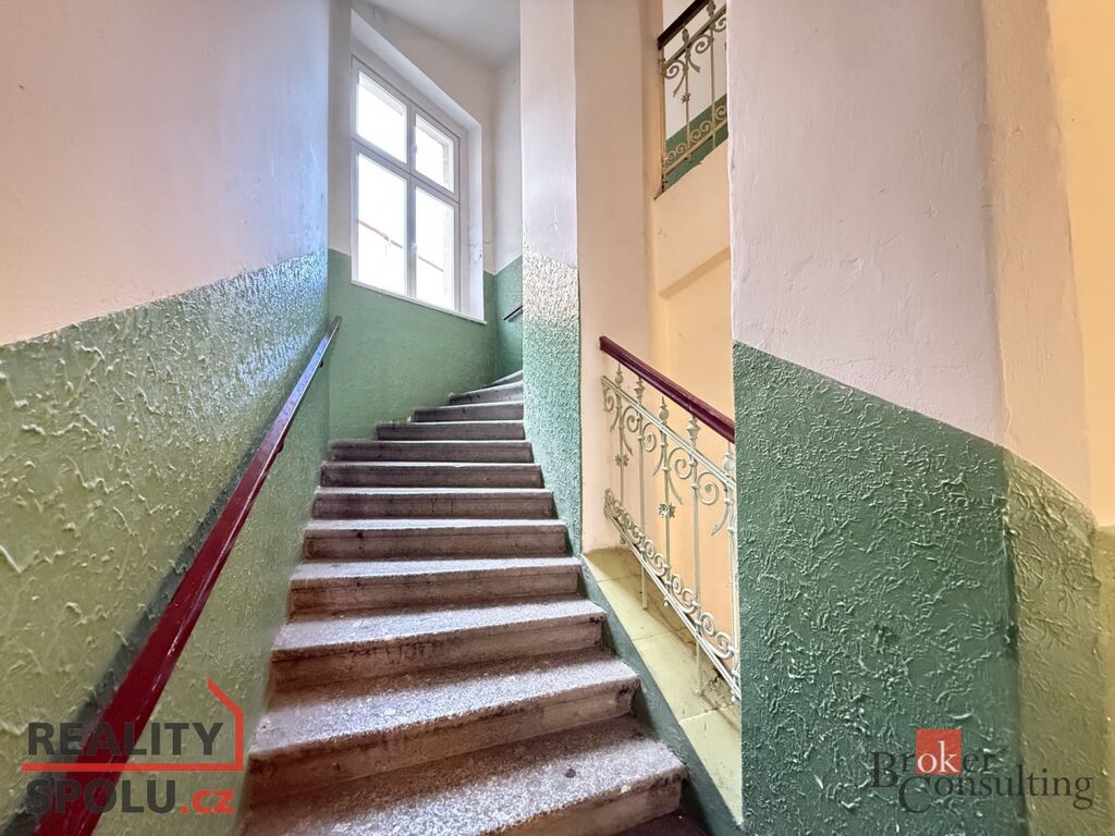 Jedná se o bytovou jednotku ve staré zástavbě, dům je v udržovaném stavu. Bytová jednotka se nachází ve 3. nadzemním podlaží bez výtahu a nabízí výhled na ulici směrem k parku, orientována je na východ. Disponuje obývacím pokojem o výměře 19m2 a ložnicí s výměrou 10m2. Zařízení na fotografiích v těchto dvou pokojích může být ponecháno k užívání nájemci. Velkou předností je prostorná a světlá koupelna, nad kterou lze využít malý úložný prostor, ve vstupní chodbě jsou k dispozici vestavěné skříně. Kuchyňský kout je plně vybaven. Domácí spotřebiče jsou také k dispozici nájemci. K bytové jednotce není sklepní kóje.