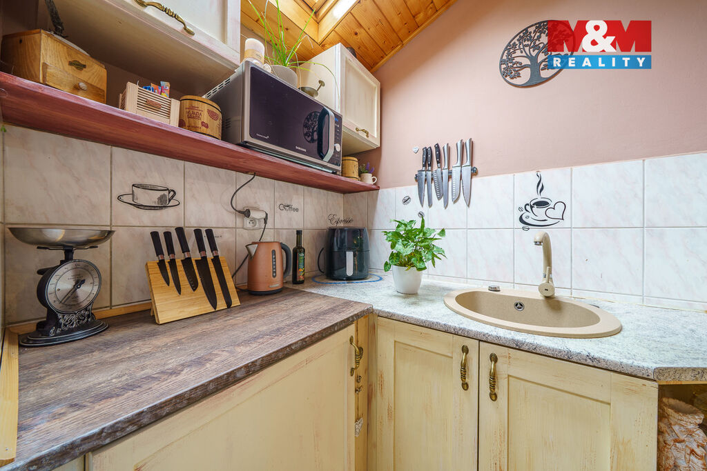 Nabízíme k prodeji krásnou chatu s možností trvalého bydlení o užitné ploše 95 m² v Karlových Varech – Staré Roli. Nemovitost je plně vybavená a připravena k okamžitému užívání. V obývacím pokoji se nachází prosklený krb, vytápění zajišťuje tepelné čerpadlo a elektrický kotel, ohřev vody bojlerem. K dispozici je vlastní velkokapacitní studna i veřejný sezónní vodovod, což zaručuje komfort celoročního provozu. Na udržované okrasné zahradě se nachází letní bazén a dvě parkovací stání na vlastním pozemku. Klidná lokalita Staré Role nabízí výbornou dostupnost do centra Karlových Varů i do okolní přírody. Ideální volba pro ty, kteří hledají kombinaci klidu, pohodlí a městské dostupnosti.