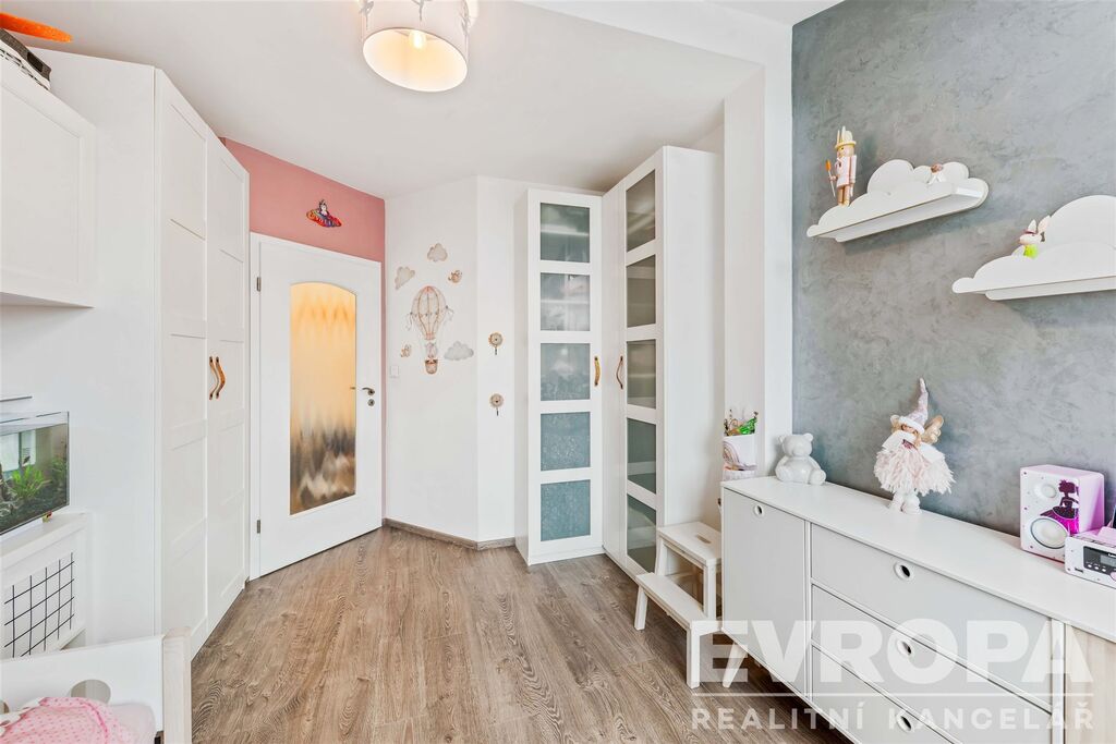 Byt se prodává bez vybavení, součástí zůstává pouze kuchyňská linka se spotřebiči a postel v obývacím pokoji.