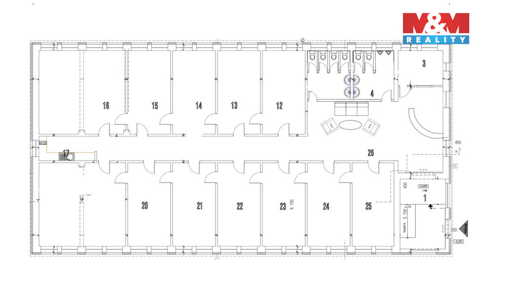 Administrativní budova je nyní bezbariérová včetně sociálního zařízení a sprchy. K dispozici je i nová kuchyňka s lednicí, mikrovlnnou troubou a varnou konvicí. Celá budova je zabezpečena kamerovým systémem a ostrahou. Měsíční najemné činí 2.880 Kč (Spotřeba elektřiny v kanceláři dle skutečnosti - měsíční odečty měřičů, spotřeba tepla (plynu) v kanceláři - poměrové rozdělení dle m2 pronajaté plochy, Společné prostory-chodby, kuchyňka, WC – podíl na úklidu, osvětlení, dodávce tepla, spotřebě vody činí 500,- Kč/měsíc (paušál)). Bližší informace u makléře.