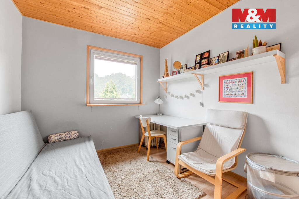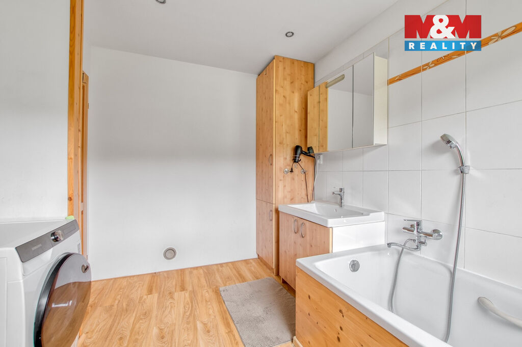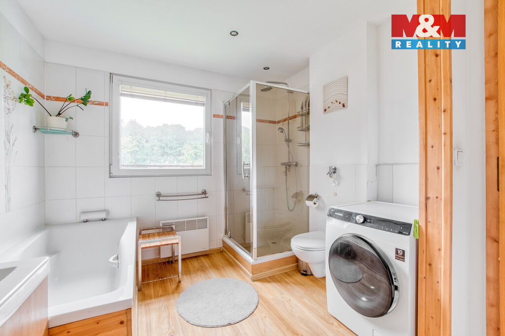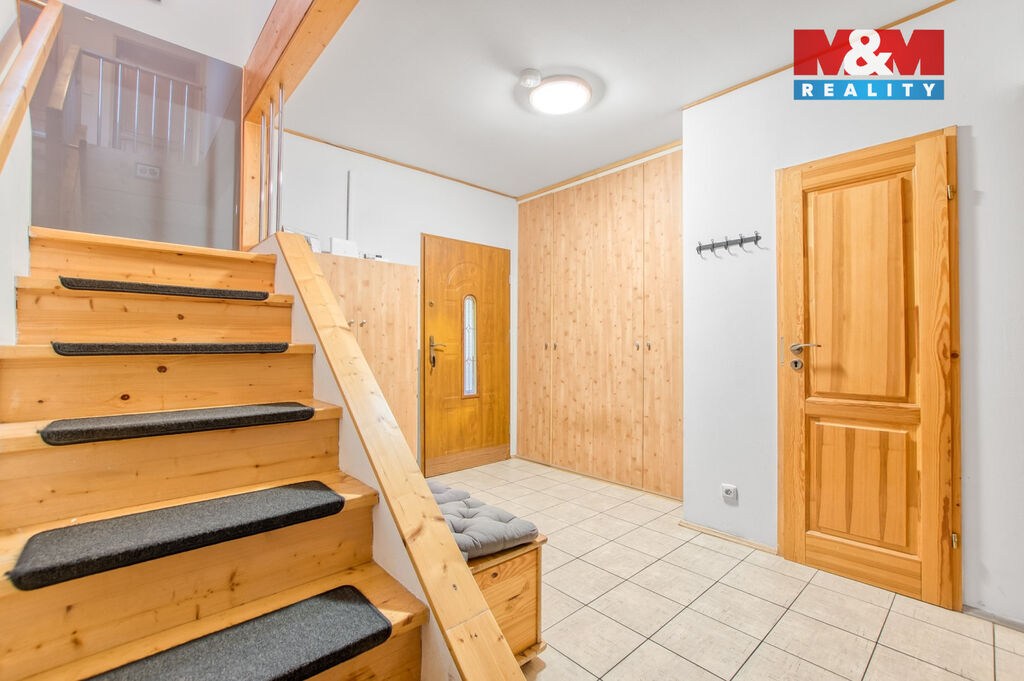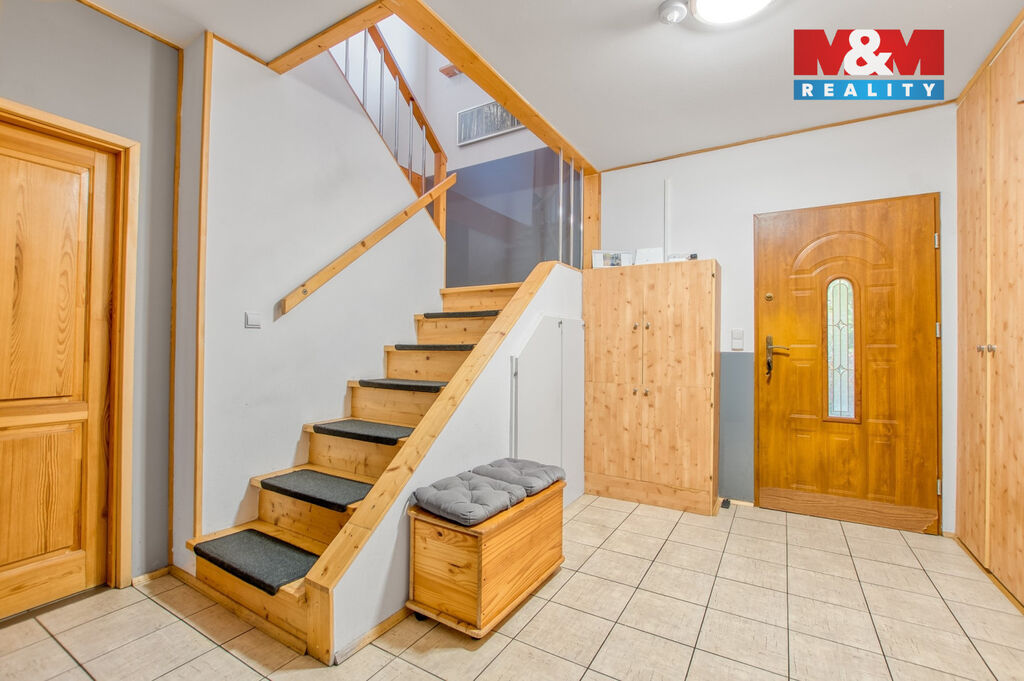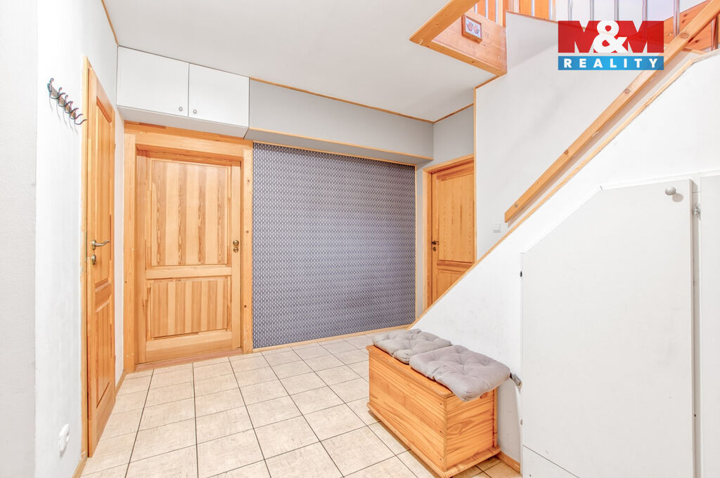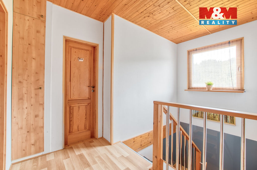 V přízemí domu je prostorná chodba se skříní a úložným prostorem, samostatné wc a schodištěm se dostaneme do prvního patra, kde jsou tři samostatné pokoje, z toho ze dvou se dá vyjít na balkón, odkud Vás nadchne výhled na Lysou horu. V horním patře je koupelna, jak se sprchovým koutem, tak i vanou, takže si každý přijde na své a k tomu další wc.