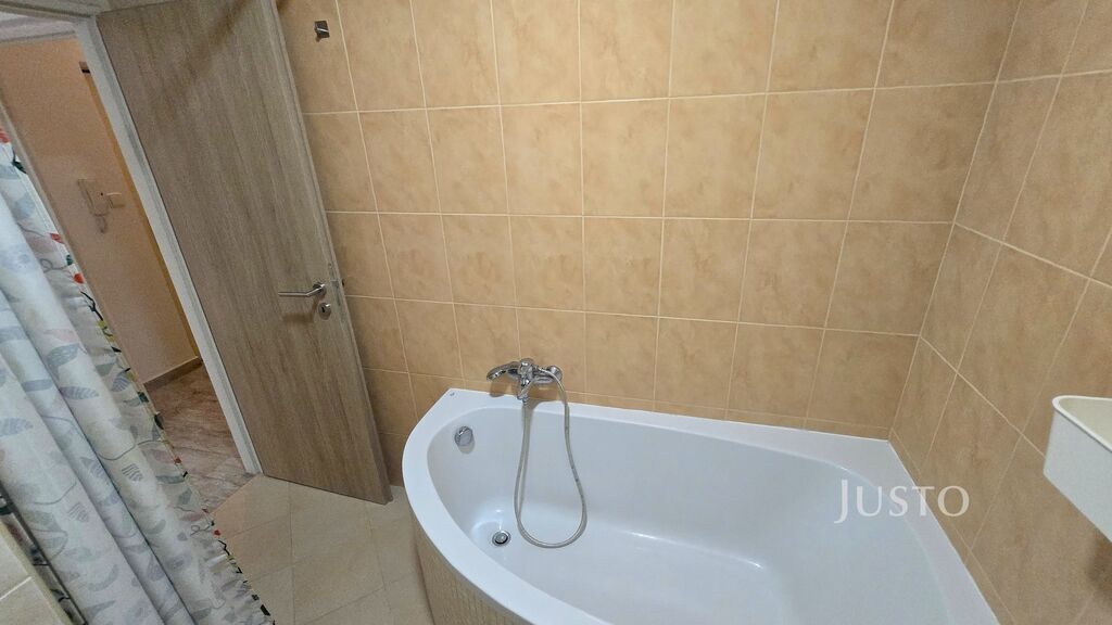 V koupelně je instalována vana, umyvadlo a toaleta.