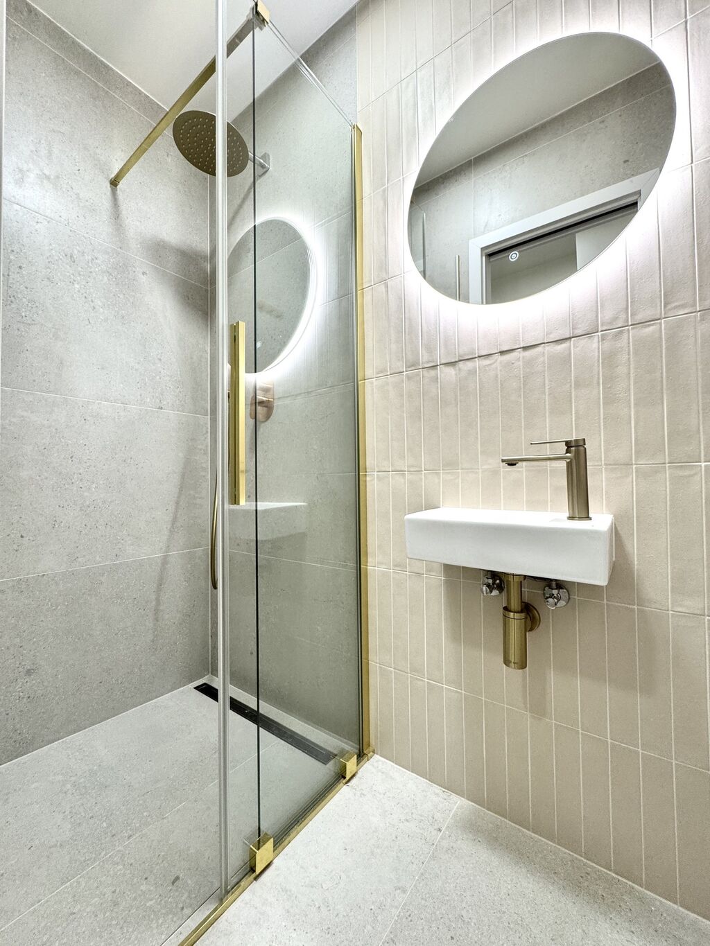 V bytě byly nově zhotoveny podlahy, provedeny obklady a dlažby a zároveň došlo k výměně elektroinstalace, vodovodních a odpadních rozvodů. Součástí vybavení je moderní kuchyňská sestava včetně spotřebičů, na které se stále vztahuje záruční lhůta. Komfort zajišťují dvě koupelny – jedna se sprchovým koutem a toaletou, druhá s vanou a samostatnou toaletou. V koupelnách je pro maximální komfort instalováno podlahové vytápění. Ostatní místnosti jsou vytápěny centrálně a teplá voda je zajišťována centrálním systémem.