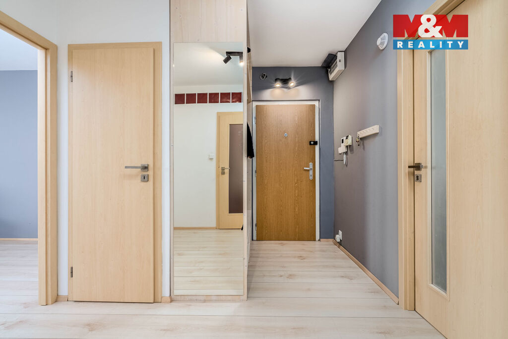 Byt se nachází v 9. nadzemním podlaží a nabízí krásný, ničím nerušený výhled, který oceníte každý den. Velkou výhodou je i zasklená lodžie, ideální pro posezení nebo odpočinek po práci.