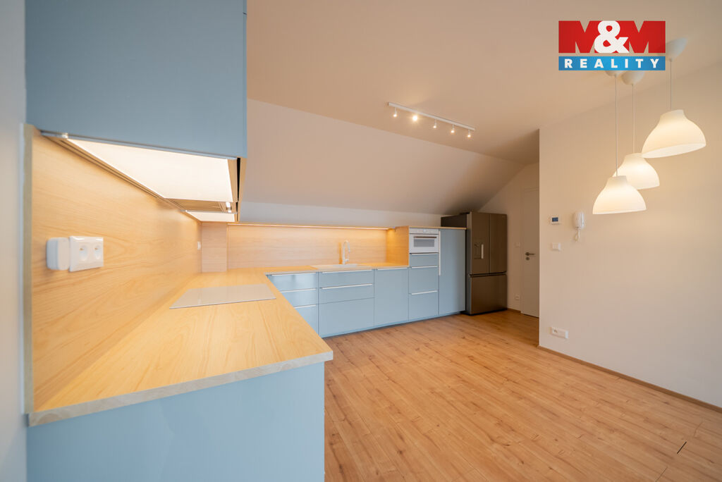 Nabízíme k prodeji prostorný a světlý byt 3+kk o užitné ploše 86,4 m², který se nachází v podkroví ve 3. nadzemním podlaží cihlové novostavby z loňského roku s výtahem v centru Modřic. Díky klimatizaci, podlahovému topení a tepelnému čerpadlu v kombinaci s fotovoltaikou nabízí pro Vaše nové bydlení maximální komfort i mimořádně nízké provozní náklady.