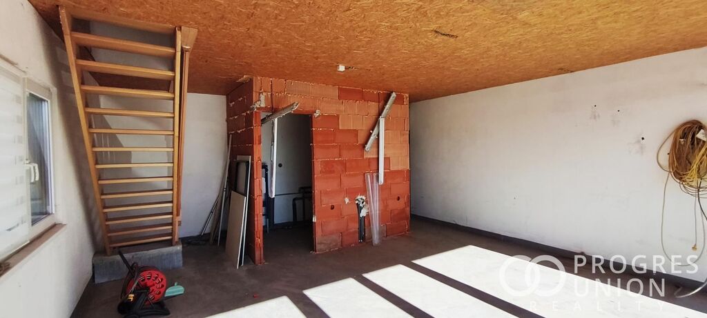 Nabízíme k prodeji RD v Zubří, jedná se o nedokončenou novostavbu o zastavěné ploše 76 m2. Celková obytná plocha je cca 110 m2. V přízemí se nachází vstupní chodba, ložnice , koupelna, WC, technická místnost a velký obývací pokoj, spojený s kuchyní, ze kterého je výstup na terasu, nebo do II.NP, kde se nachází prostor, který lze rozdělit na dva dětské pokoje. K dokončení chybí, finální podlahy, stopní podhled v I. NP, vybavení koupelny a WC. Dům se nachází v atraktivní lokalitě na okraji obce s nádherným výhledem do okolí. Terénní úpravy a zahrada o velikosti 516 m2 je dokončena. Příjezd je po obecní asfaltové komunikaci. Pokud hledáte menší dům o dispozici 4KK, který bude mít minimální náklady na provoz, tak je tato nabídky právě pro Vás.