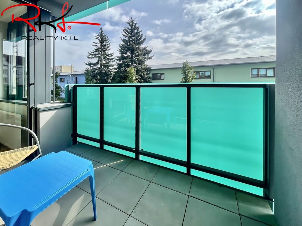 Vnitřní dispozice: Vstupní chodba kde se nachází vstup do obývacího pokoje spojeného s kuchyňským koutem, který nabízí přímí vstup na balkón, kuchyňský kout vybaven moderními vestavnými spotřebiči. Dále z chodby je vstup do koupelny s vanovým koutem a toaletou.