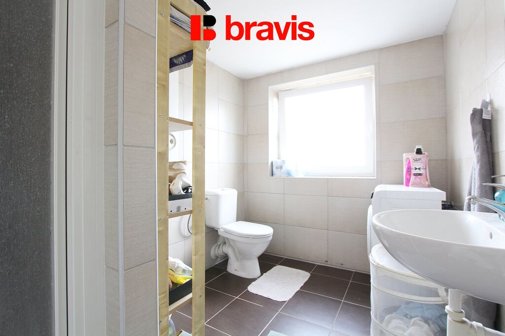 V koupelně je sprchový kout, umyvadlo, toaleta a přípojka na pračku.