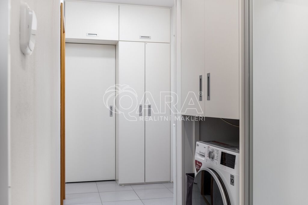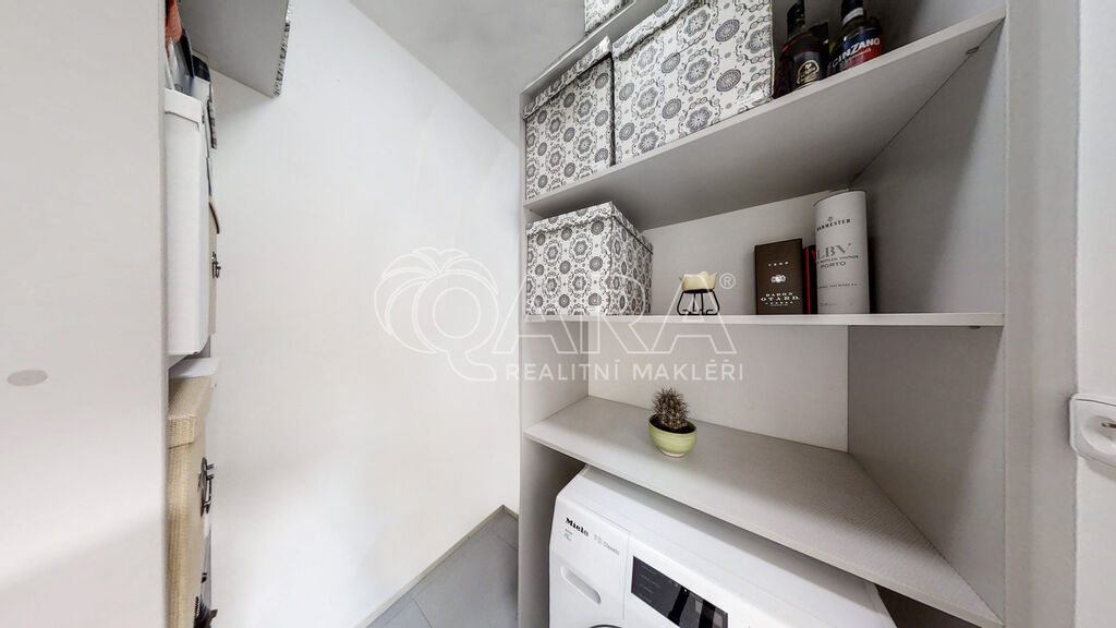 Úložný prostor je v bytě nadstandardní. Kromě vestavěné skříně na chodbě, budete mít k dispozici také komoru, kde je prostor například i pro sušičku. V suterénu domu se nachází ještě sklep o velikosti 3 m2.