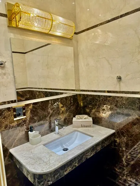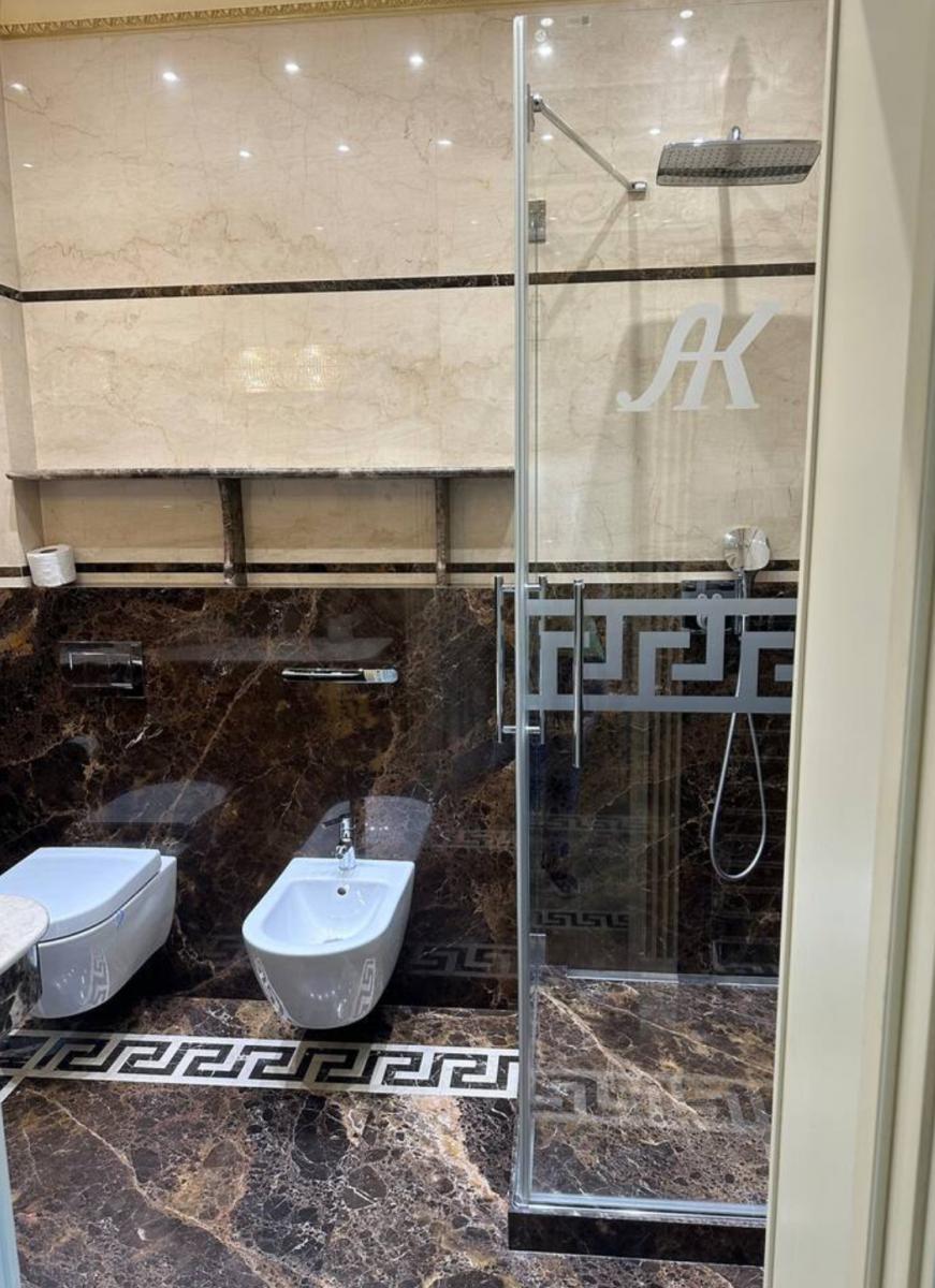 V obou koupelnách je podlahové vytápění, obklady i podlahy jsou z luxusního mramoru.