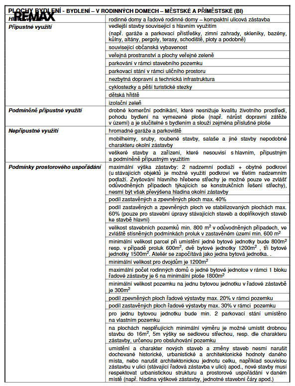 * výstavbu rodinných a řadových domů,