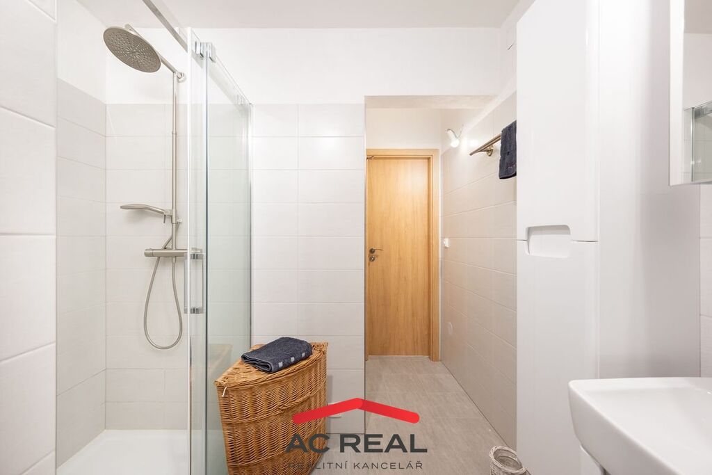 V přízemí vpravo nová koupelna s walk-in sprchovým koutem a samostatné WC.