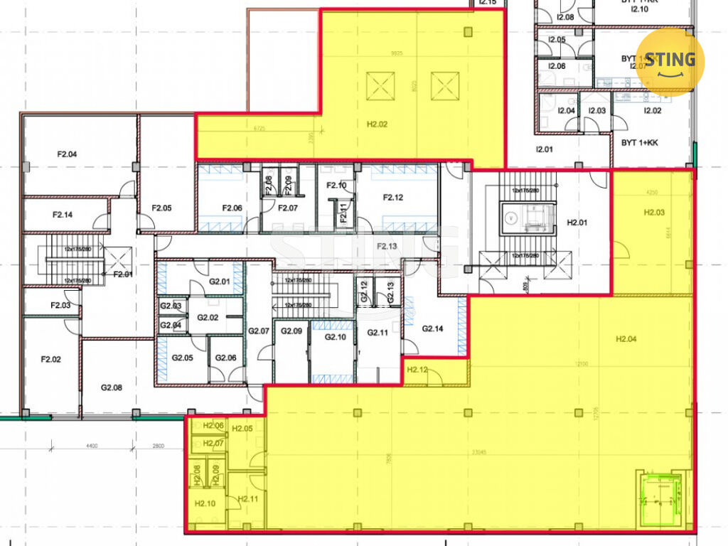 H2.02 – zázemí pro zaměstnance, kancelář, skladové prostory (se světlíky, u schodiště a výtahu)