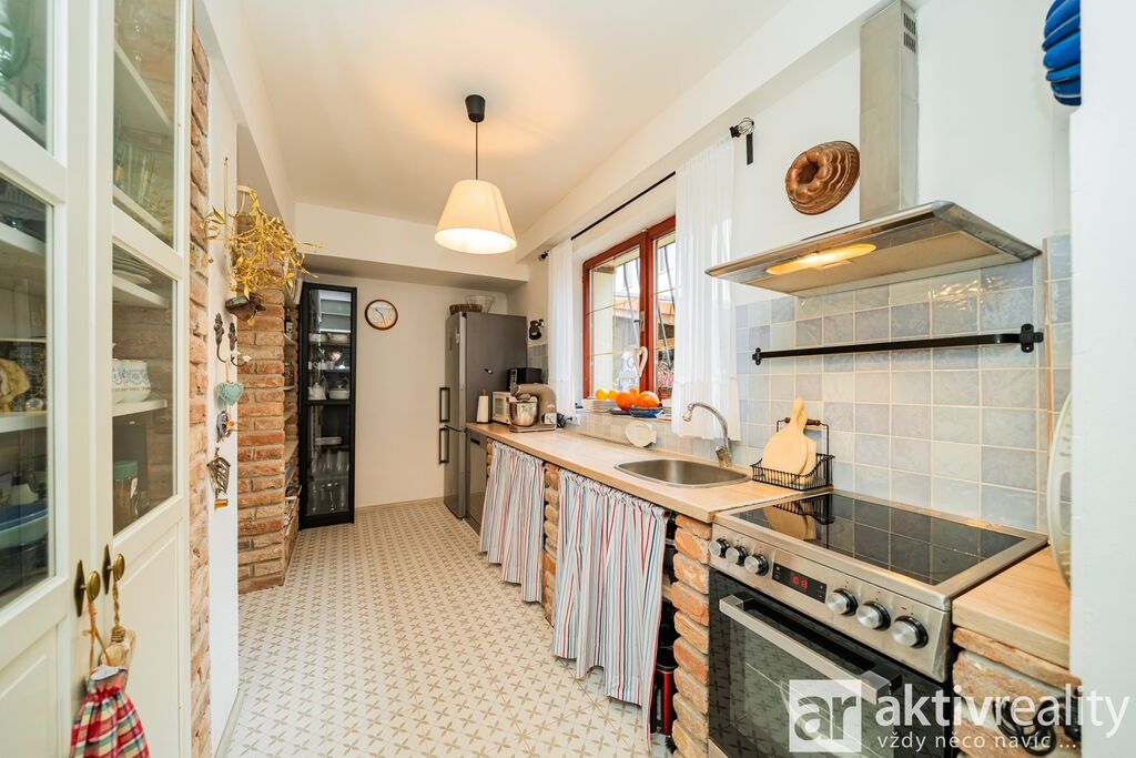 Obytná část domu o dispozici 2+1 nabízí možnost pohodlného bydlení nebo dalšího pronájmu s ročním výnosem 240 000,- Kč. V přízemí se nachází vstupní chodba, technická místnost s místem pro pračku a sušičku, špajz a kuchyně s jídelnou s výhledem do dvora. Po dřevěném schodišti vystoupáte do patra, kde je prostorný obývací pokoj s krbovými kamny, ložnice a koupelna se sprchovým koutem i vanou (aktuálně v rekonstrukci).