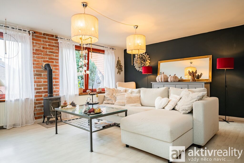 Dům nabízí mnoho dispozičních možností – díky rozvodům vody a odpadu v obývacím pokoji je možné vytvořit druhou kuchyni a rozdělit tak prostor na dvě bytové jednotky. Vytápění a ohřev vody zajišťuje kondenzační plynový kotel (stáří 6 let).