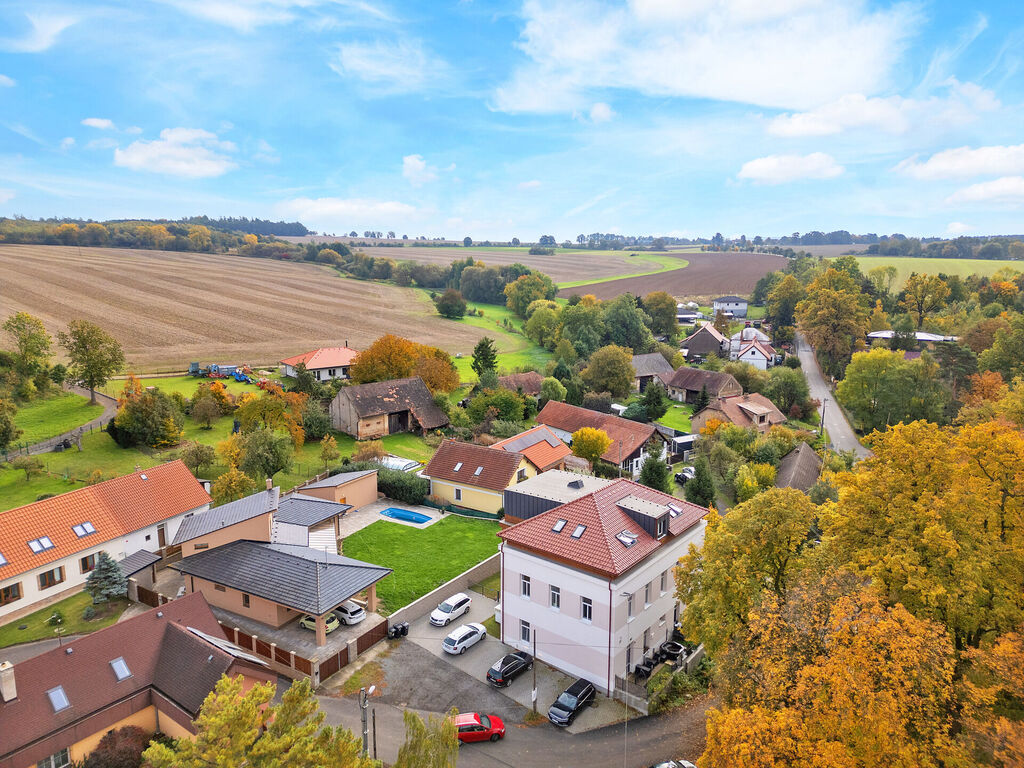 Velmi dobrá dopravní dostupnost – Jesenice je vzdálena 15min jízdy autem, zastávka metra Chodov 25min. Autobusová zastávka příměstské linky 335 je přímo před domem, na metro Budějovická je to necelých 40 min jízdy. Jedná se o zajímavou nemovitost se zahradou, parkováním i skladovým prostorem, která je umístěna v malebném prostředí v blízkosti přírody, cyklistické stezky či golfových hřišť (OAKS Prague, Štiřín, nebo Golf club Pyšely). Veškerá občanská vybavenost v obci Kamenice – ZŠ a MŠ 6 minut jízdy.
