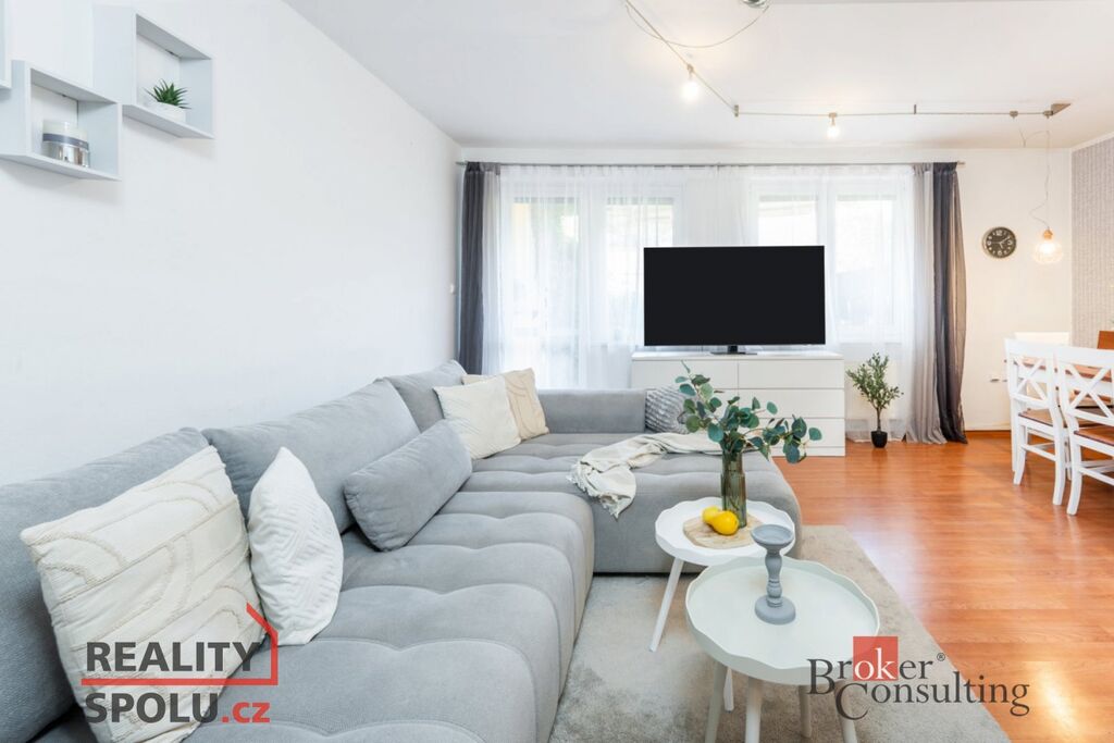 Dispozice bytu je prakticky řešená, prostorný obývací pokoj s kuchyňským koutem se vstupem na zahrádku, dva samostatné pokoje, prostorná chodba, koupelna s vanou a samostatné WC.