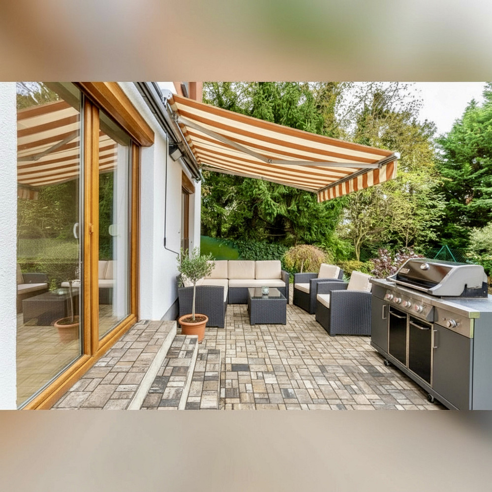•	Zahrada 341 m² s prostornou terasou a výsuvnou markýzou, přístupnou z obývacího pokoje francouzskými okny. Ideální prostor pro rodinné posezení i relaxaci.