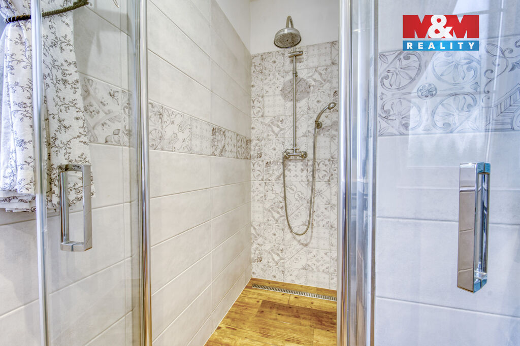 Parkování bez starostí: garáž, stání na pozemku i na ulici. Zahrada okrasná i užitková, oplocená, doplněná o dílnu a kůlnu. Příjezd zpevněný, vhodný i pro nákladní auta. Uvnitř keramické podlahy, dřevěné stropy a koupelna s vanou, sprchou i bidetem.