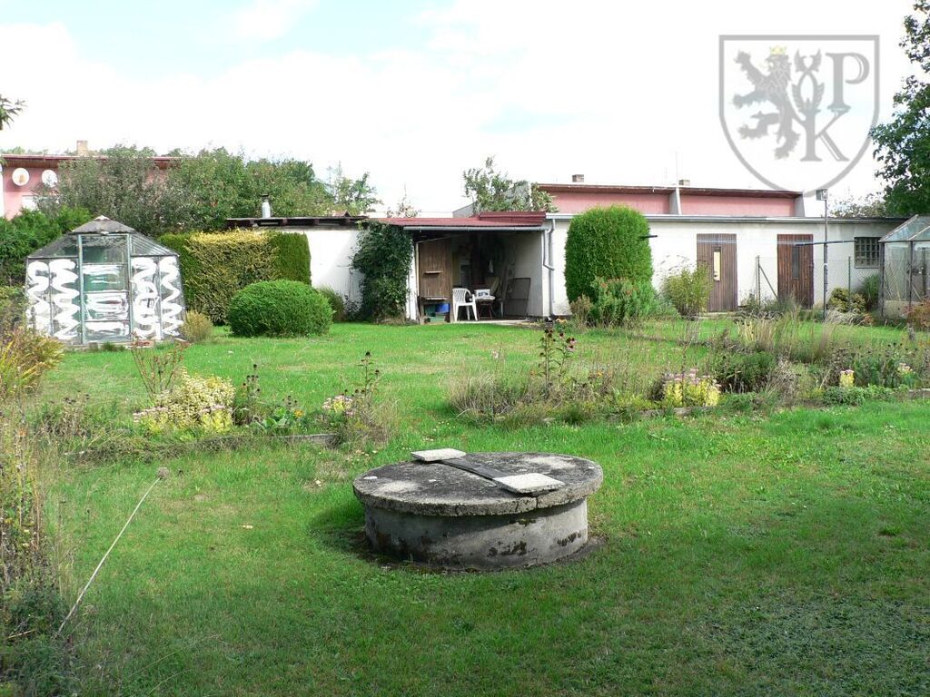 Za domem v horní části zahrady stojí samostatně zděný zahradní sklad s přístřeškem (cca 32 m2) a sklepem na ovoce a skleník (cca 15 m2).