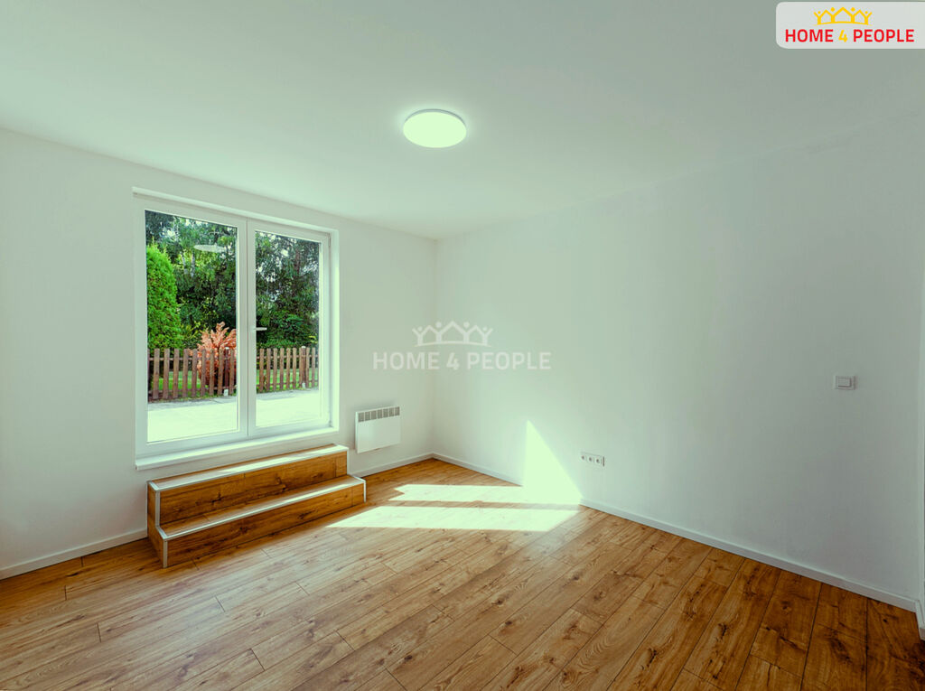 Součástí bytu je světlý obývací pokoj s kuchyňským koutem a útulná ložnice. Koupelna je vybavena sprchovým koutem a oddělenou toaletou. Z obývacího pokoje vede přímý vstup na prostornou terasu o velikosti 12 m², která nabízí příjemné posezení a zároveň možnost budoucí výstavby zimní zahrady, díky níž lze obytnou plochu rozšířit o další místnost. K bytu náleží také dvě parkovací místa (na základě sousedské dohody).