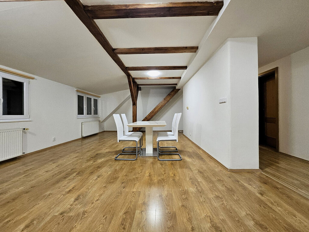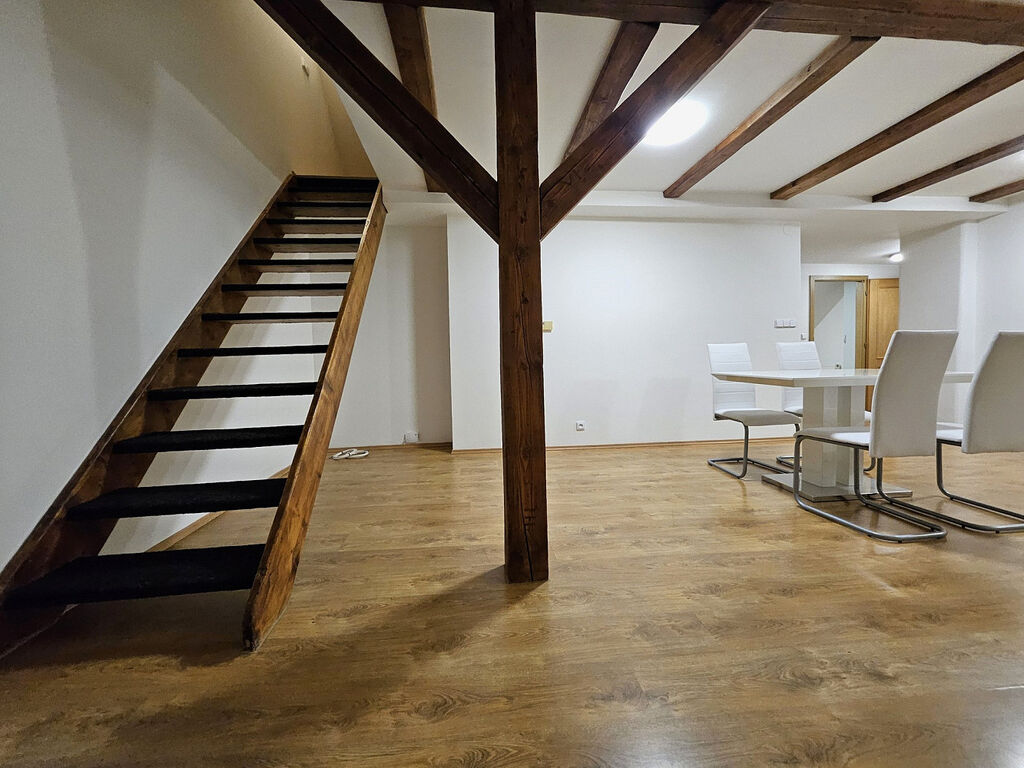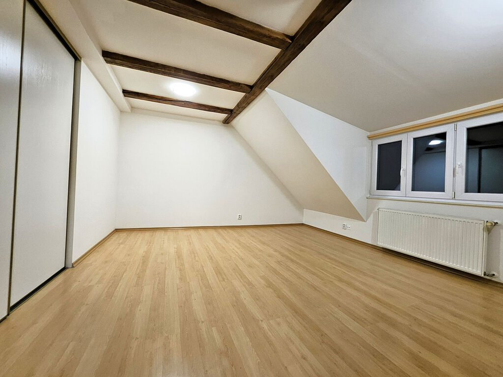 K pronájmu nabízíme krásný, světlý a prostorný byt o dispozici 3+1 s podkrovní mezonetovou místností (např. hernou či pracovnou) o délce 11 metrů. Celková plocha bytu činí 95 m².