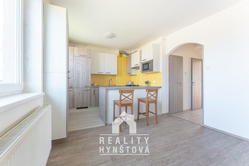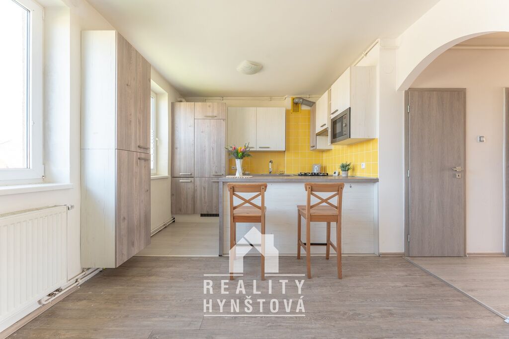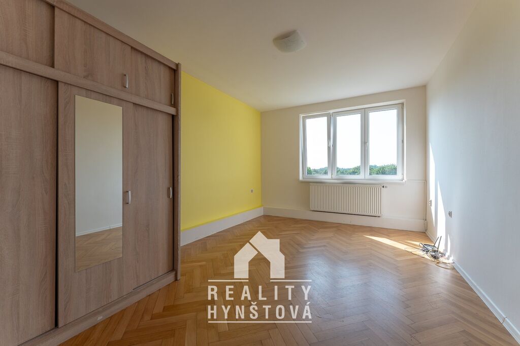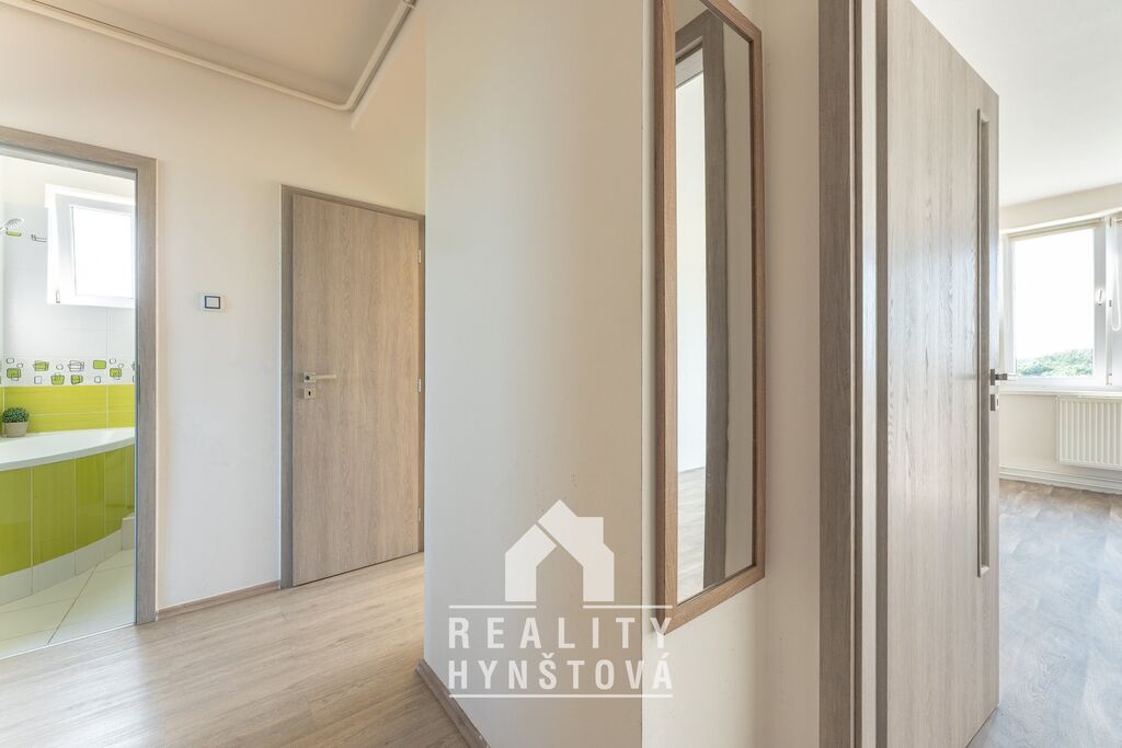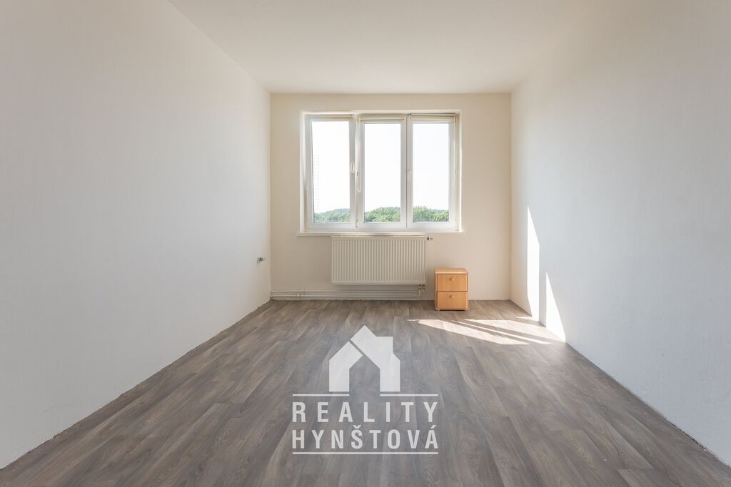Z bytu je příjemný výhled do přírody a má také pěkné dispoziční uspořádání, kdy z 3+1 je nyní 3+kk. Z centrální předsíně se vchází do všech místností: 2x pokoj, kuchyň s jídelnou, toaleta, koupelna.