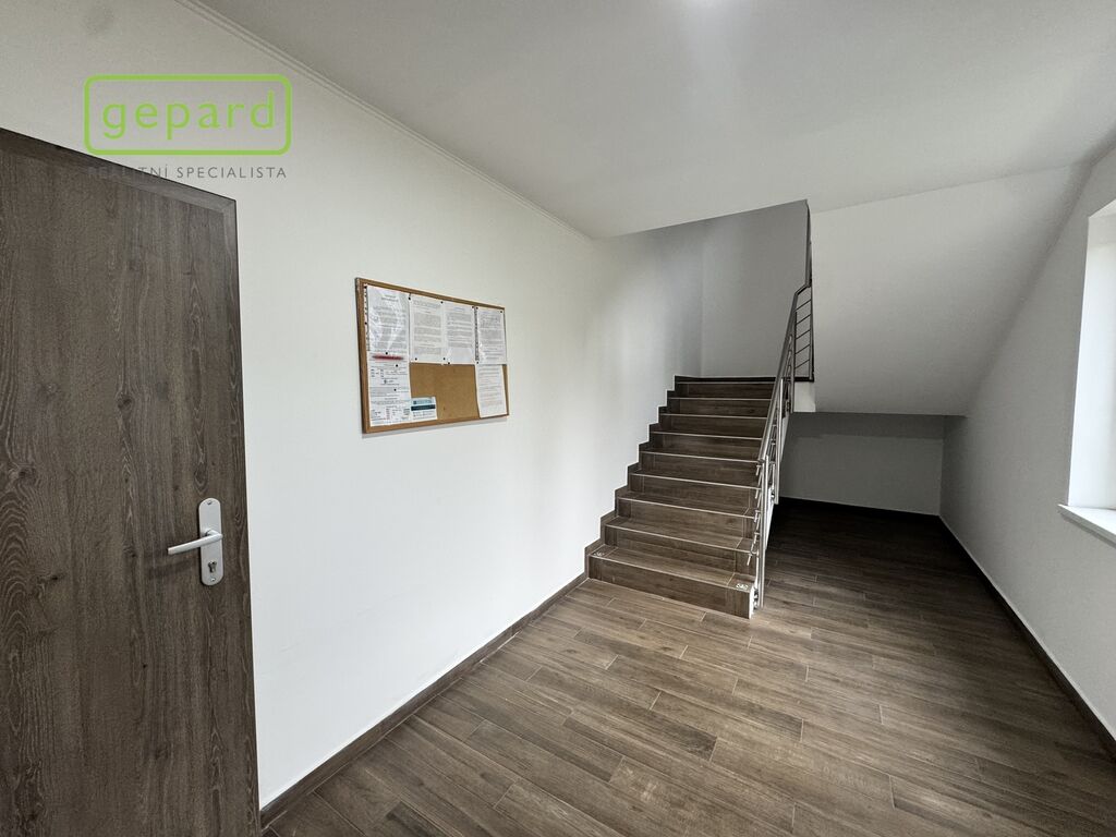 Byt je připraven k okamžitému nastěhování, bez nutnosti dalších úprav. Dispozice zahrnuje vstupní předsíň s místem na šatní skříň, koupelnu se sprchovým koutem, umyvadlem, skříňkou a WC a obytný prostor s moderní kuchyňskou linkou. Podlahy pokrývá kvalitní vinyl s dekorem dřeva, okna jsou plastová. K jednotce náleží také uzamykatelná komora na patře (2 m²).