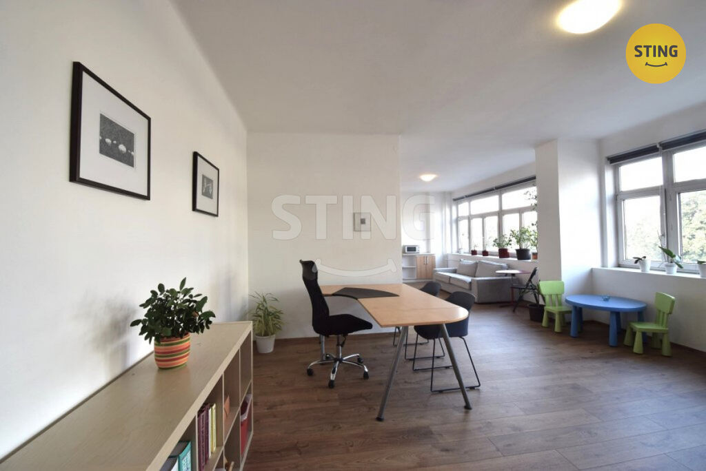 K pronájmu nabízíme atraktivní prostory o celkové užitné ploše 108 m2, umístěné ve 3. nadzemním podlaží budovy s výtahem. Součástí jsou 3 samostatné místnosti, z toho jedna s velkým kuchyňským koutem, koupelna se sprchovým koutem a toaletou, technická místnost, ideální kombinace pro kancelářské, poradenské či kreativní využití s případným zázemím pro bydlení.