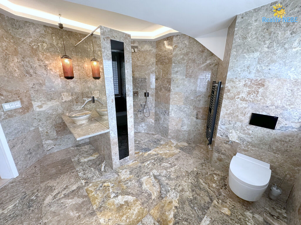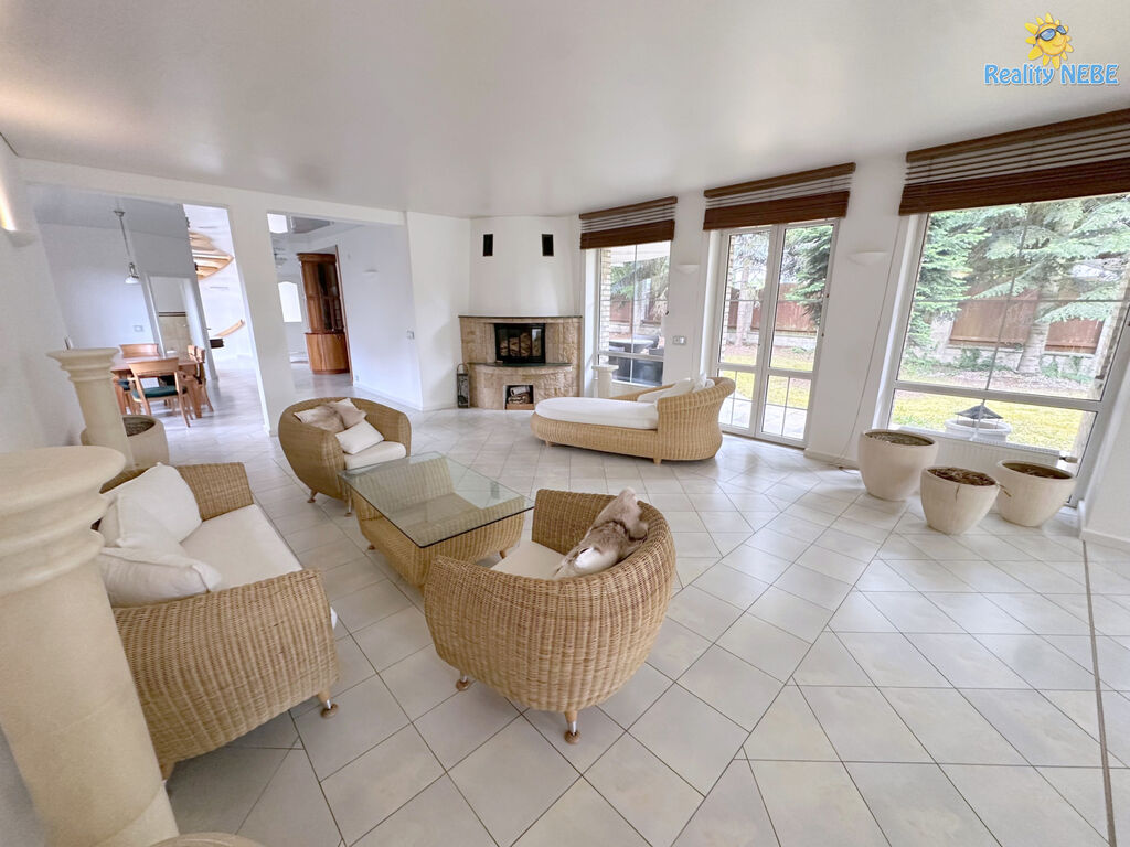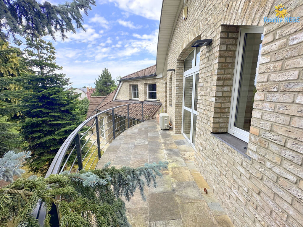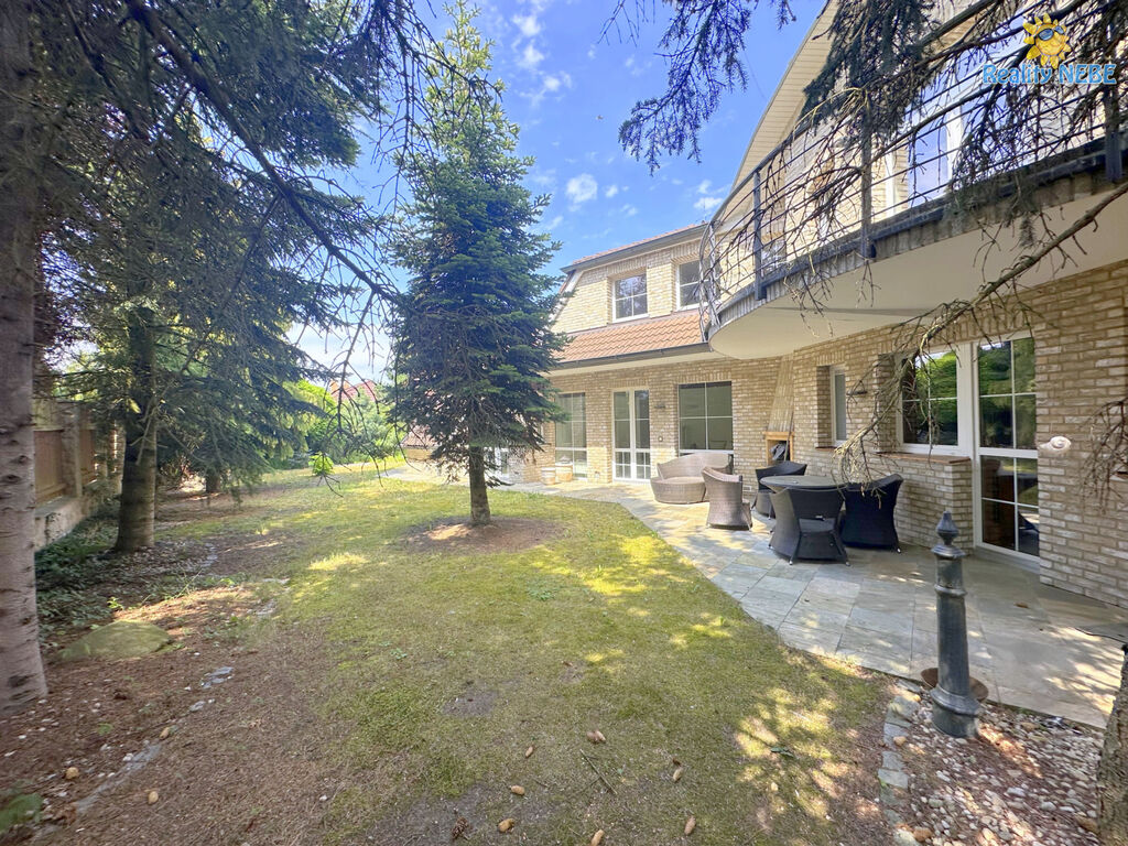 Nabízíme k dlouhodobému pronájmu rodinný dům se zahradou v Praze - Benicích. Třípodlažní vila z roku 2000 o vnitřní podlahové ploše 427m2 s dvojgaráží 39m2, náleží k ní zahrada o velikosti 580m2. Dispozice je atypická, dominantou 1NP je obývací pokoj s krbem a výstupy do zahrady, jídelna, kompletně zařízená kuchyně, koupelna, špajz a spousta úložných prostor. Také dvojgaráž přístupná ze vstupní chodby. 2NP skýtá 3 ložnice (2 s výstupem na balkon), 2 koupelny s WC, 2x šatna. 1PP je velmi prostorné, celkem 85m2 rozděleno do spousty úložných a technických prostor, je zde další koupelna s WC a sauna. Dům je napojen na všechny inženýrské sítě, vlastní ústřední vytápění tepelným čerpadlem. Obytné místnosti jsou orientovány na Jižní a Jihozápadní stranu.