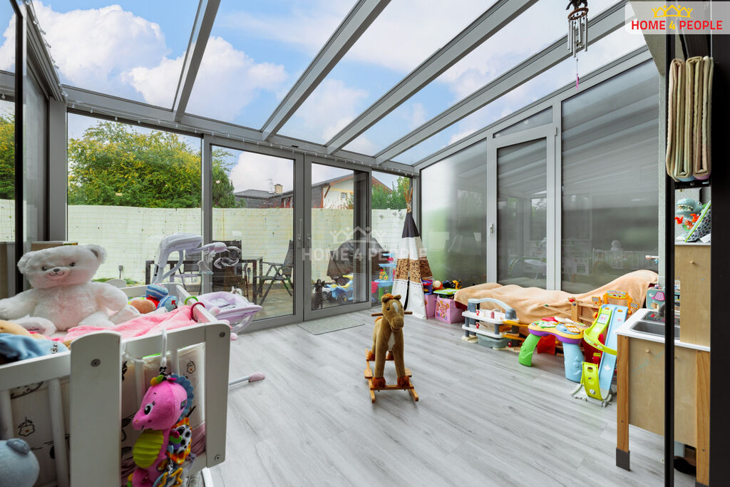 Zprostředkujeme Vám ve výhradním zastoupení, prodej krásného prostorného řadového domu – vedený jako byt o velikosti 125 m² rozkládající se na třech patrech což zaručuje soukromí (kolaudovaný 2019) o dispozici 4+kk + vytápěná zimní zahrada s trojskly 14,5m² , která je celoročně obyvatelná + zahrada 153 m² kde můžete grilovat či může být bazén pro děti, na nádherném místě v rezidenční části Praha 9 - Koloděje. K jednotce náleží dle listu vlastnictví garáž o zastavěné ploše 19 m² a skladová místnost 3 m² u domu a jedno venkovní parkovací stání. Na všech oknech včetně zimní zahrady jsou sítě proti hmyzu, k dispozici je systém Jablotron a chytrá domácnost, která se ovládá přes telefon s vysokorychlostním internetem zdarma. Dům se prodává včetně vybavení, tedy nic víc nepotřebujete a můžete se rovnou nastěhovat.