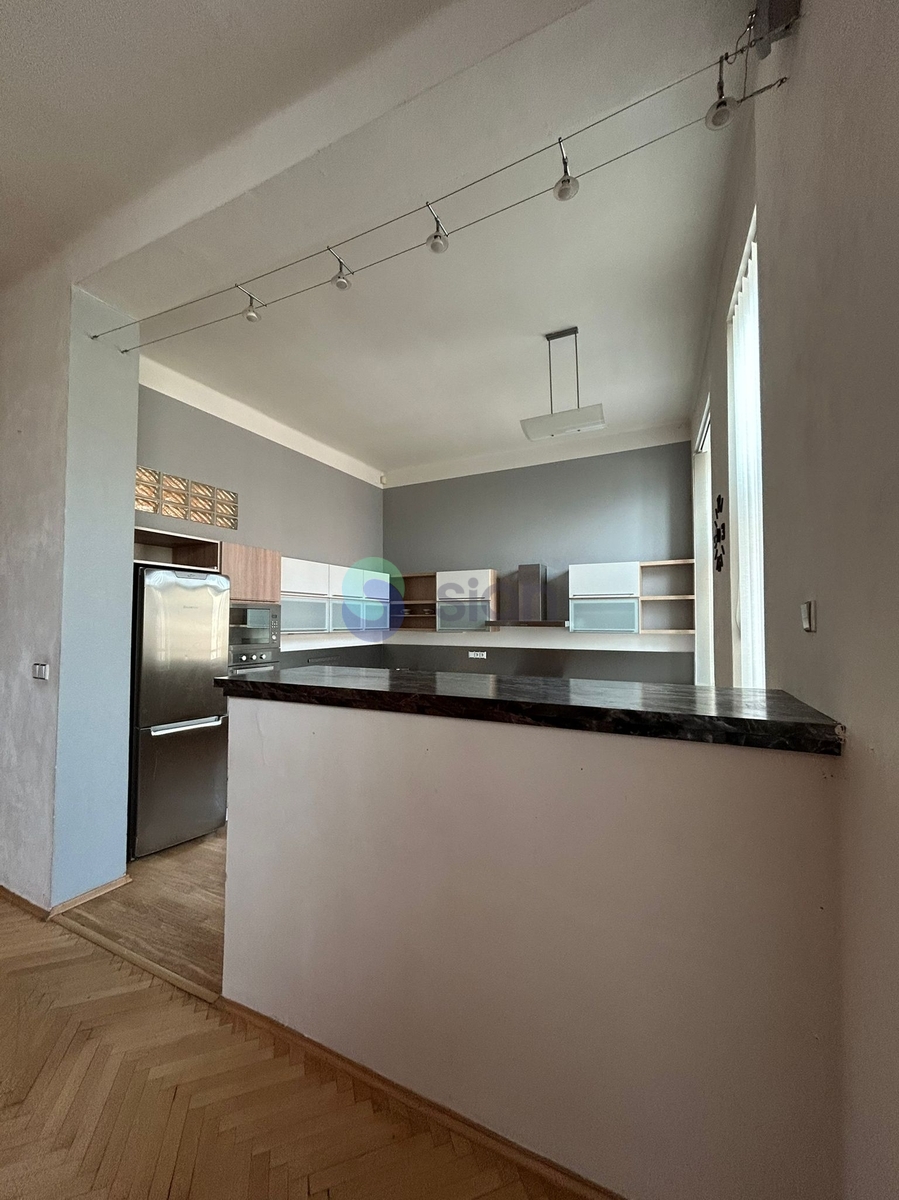 Byt je částečně vybavený. Kuchyňská linka je osazena moderními spotřebiči – lednicí, mikrovlnnou troubou, myčkou nádobí, elektrickou troubou, varnou deskou a digestoří.