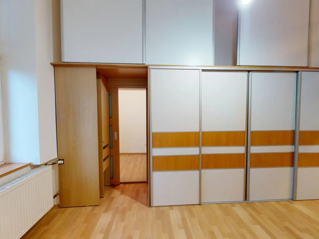 K dispozici jsou také vestavěné skříně a samostatná šatna, které poskytují dostatek úložného prostoru.