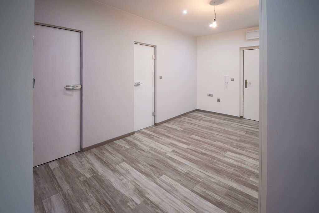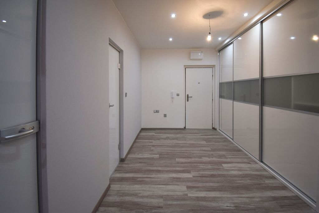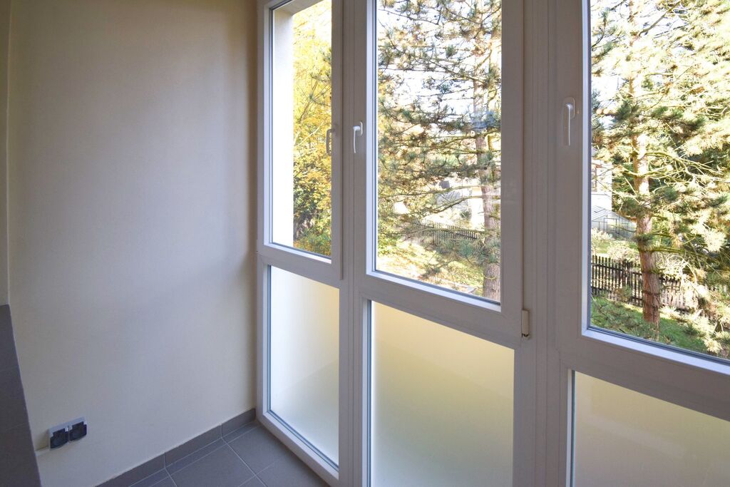 3 pokoji, kuchyní, samostatným wc a koupelnou. K bytu náleží lodžie a sklepní jednotka. Byt se nabízí částečně zařízený luxusní kuchyňskou linkou vybavenou spotřebiči Miele. V koupelně je sprchový kout i vana, na podlaze vinyl v šedé barvě a nadstandardní kvalitě.