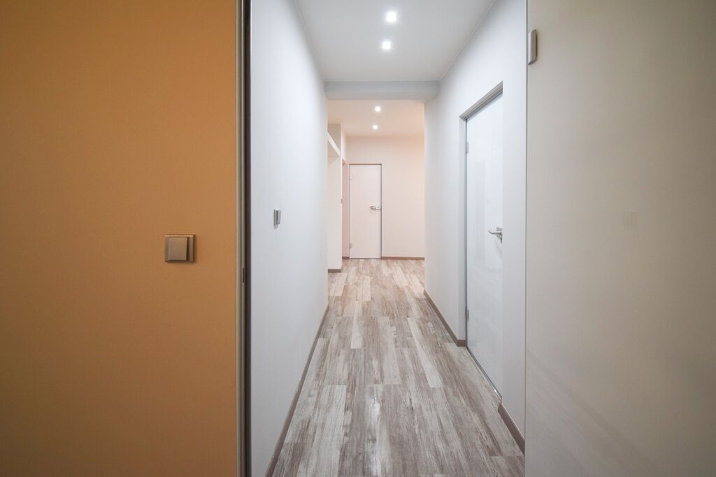 Byt disponuje prostornou vstupní halou s vestavnou skříní po celé délce vstupní haly,