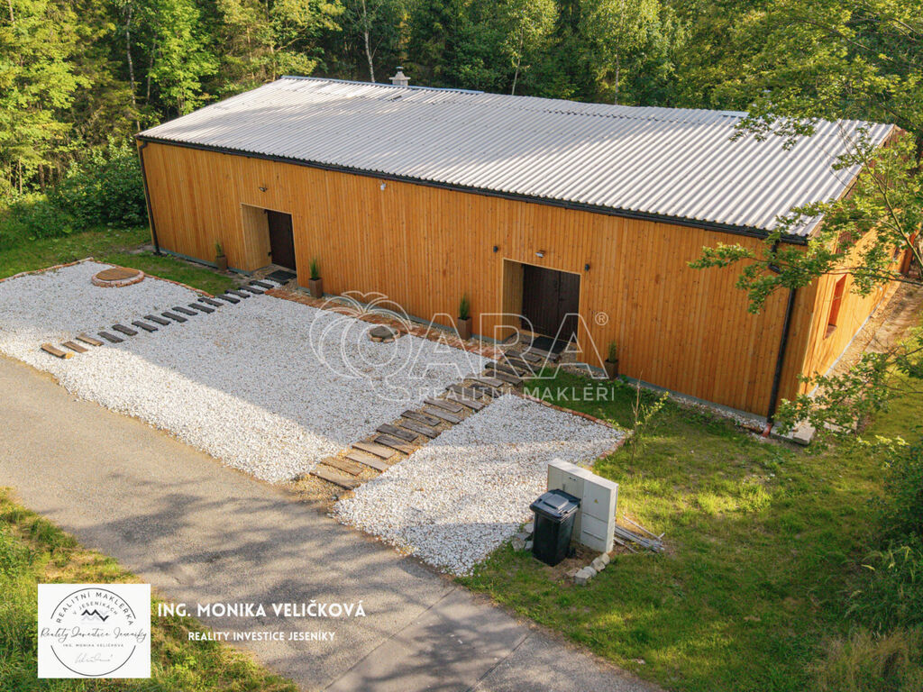 Chalupa stojí na klidném místě u lesa s vlastním pozemkem, přístupovou cestou a parkováním. Výborná dostupnost – Jeseník 10 min, Mikulovice 5 min, Ostrava 2 h, Olomouc 1,5 h.