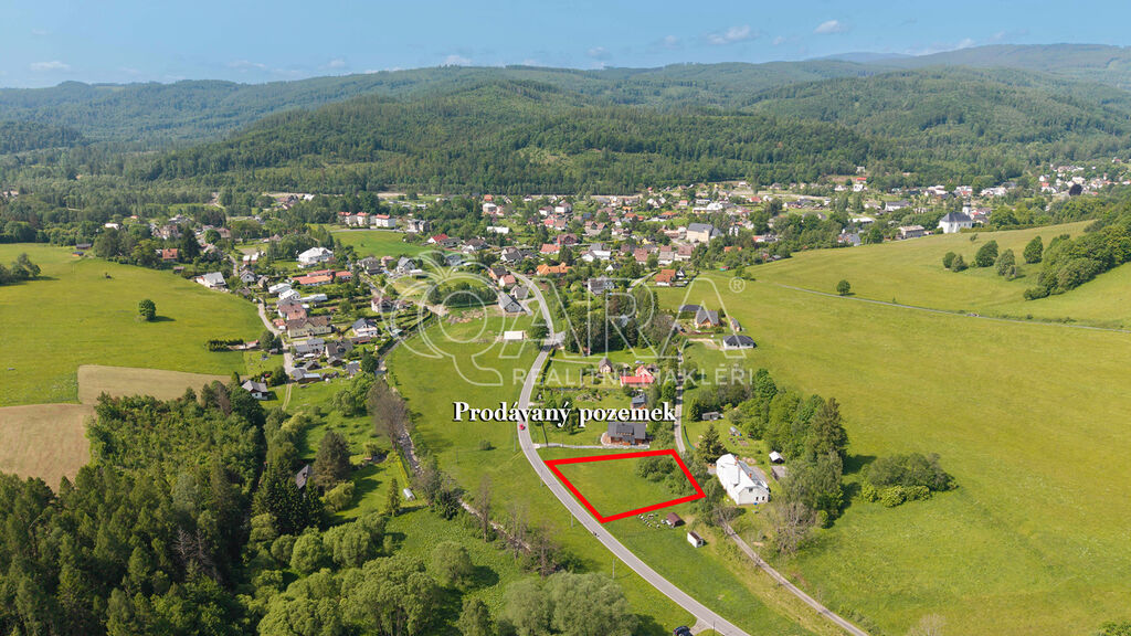 Nabízíme k prodeji slunný stavební pozemek o celkové výměře 848 m² v obci Karlovice, okres Bruntál, v malebném prostředí Jeseníků.
