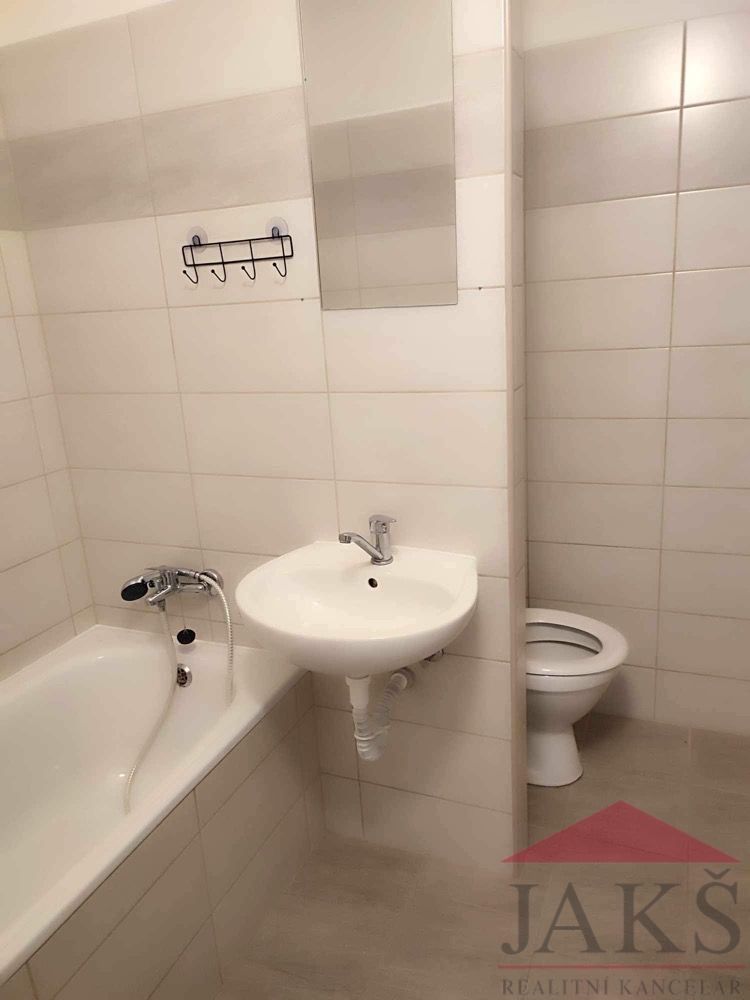 Popis: předsíň (vývody pro pračku), nová zděná koupelna (vana se sprchou, umyvadlo se zrcadlem, WC), obytná kuchyně (kuchyňská linka s HV troubou se sklo-keramickou deskou a digestoří) a prostorný pokoj.