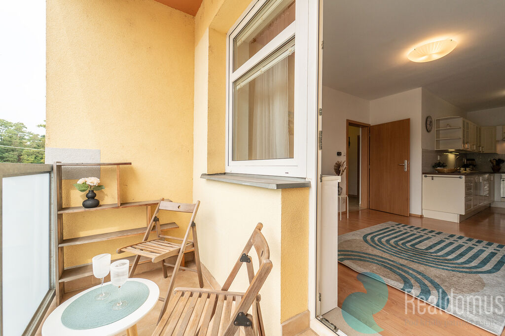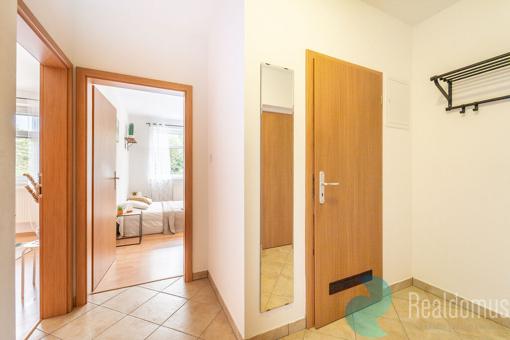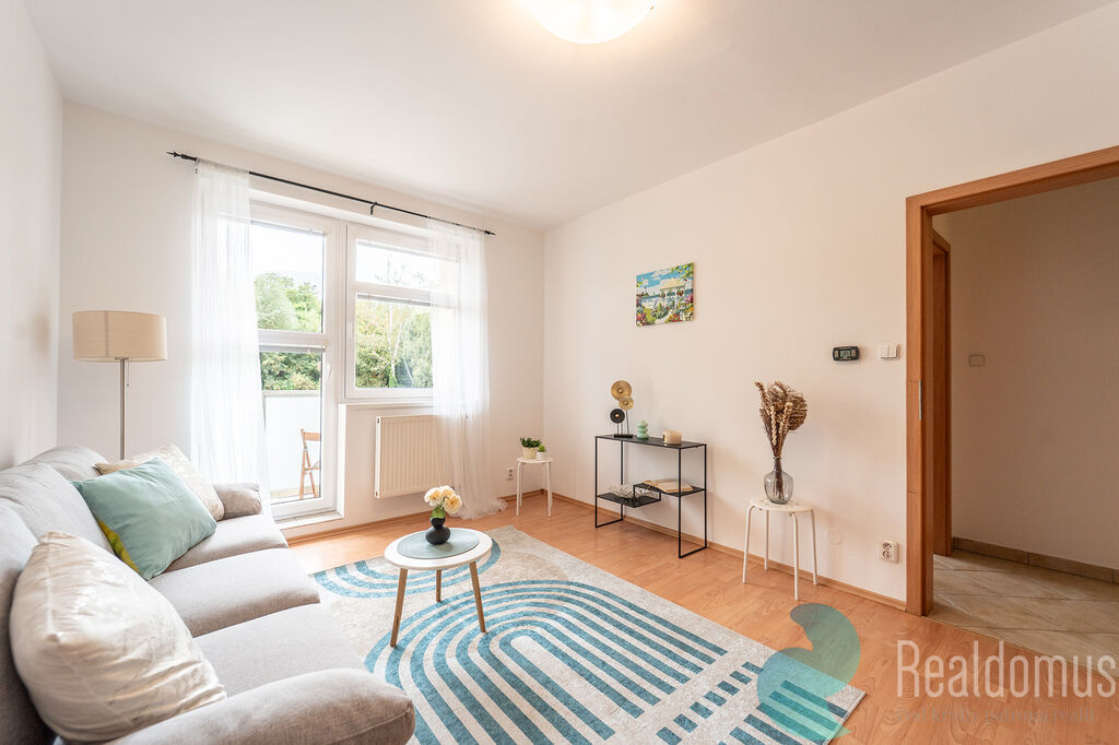 Byt tvoří vstupní předsíň, ze které je samostatný vstup do obývacího pokoje s kuchyňským koutem, ložnice, koupelny, odděleného WC a komory. K bytu náleží prostorná lodžie, ideální pro odpočinek či posezení u kávy, a také vlastní parkovací stání přímo před domem, které je již zahrnuto v ceně.