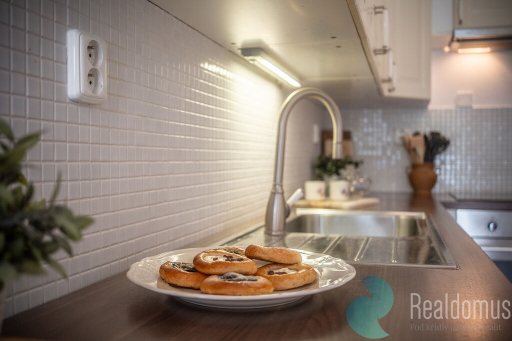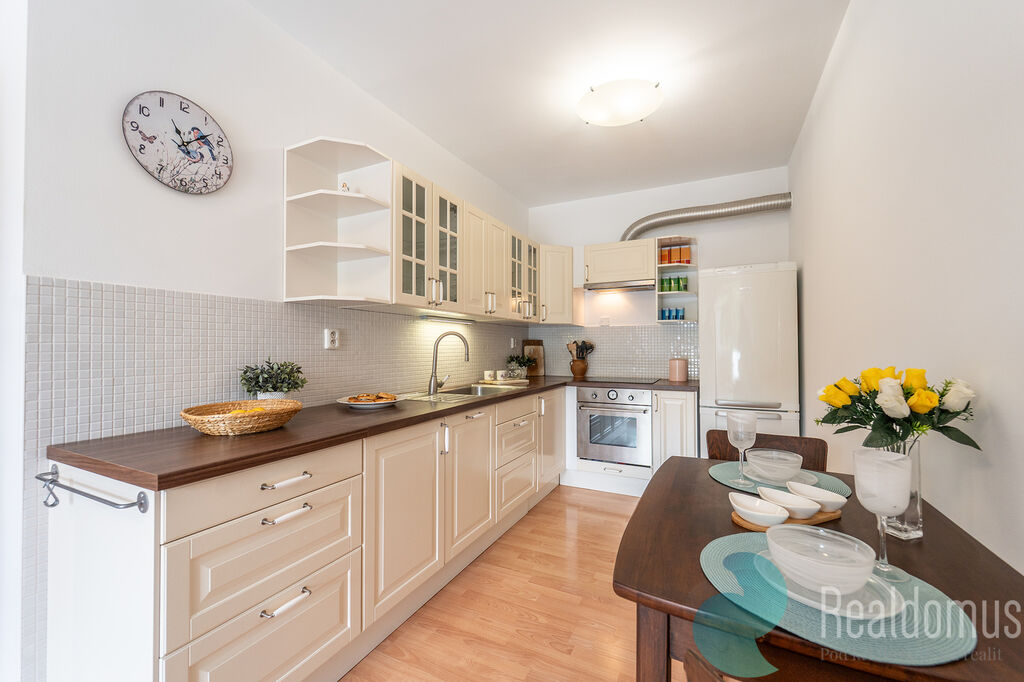 Byt bude pronajat bez nábytku na fotografiích. Součástí vybavení je kuchyňská linka, lednice, pračka.