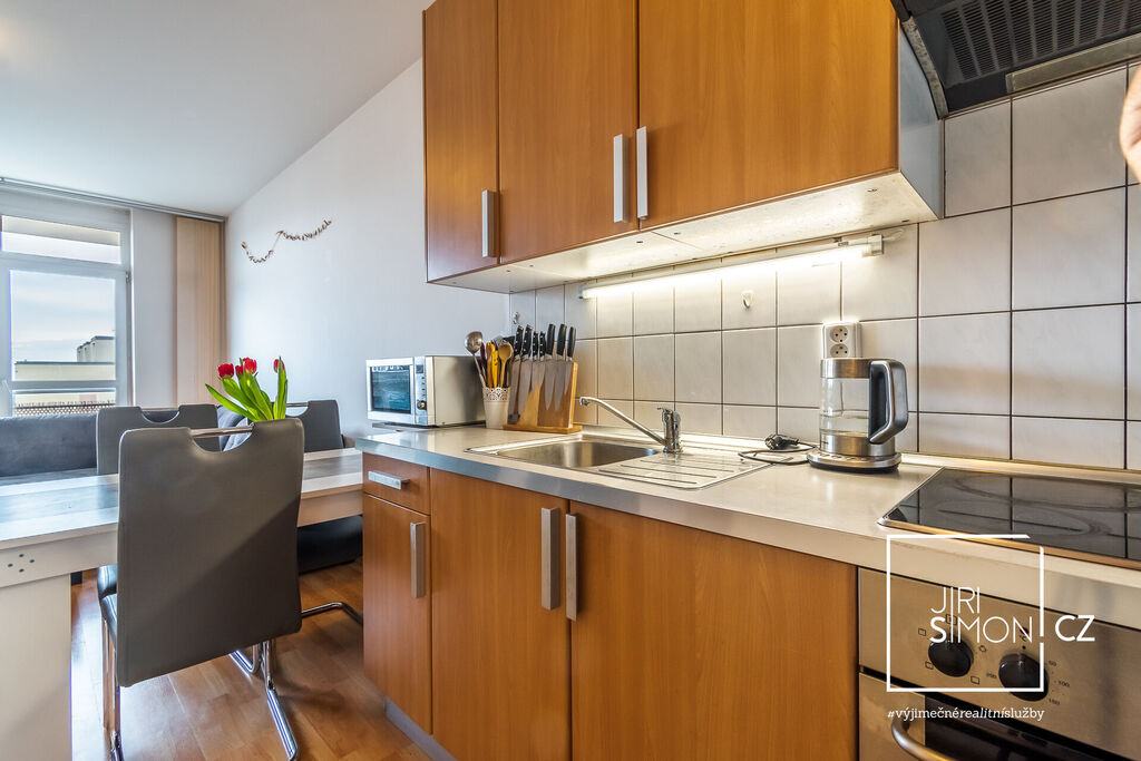 Exkluzivně vám nabízíme k pronájmu moderní byt s dispozicí 2+kk a výměrou 52 m2 na adrese Skuteckého 1705/3a, Praha - Řepy. Byt se nachází v moderním bytovém domě, s podzemními parkovacími stáními. Jedno parkovací stání patří k bytu a je součástí nájmu. Byt obsahuje velký obývací pokoj s kuchyňským koutem, velkou ložnici, koupelnu s wc, komoru, velký balkón, sklep v přízemí a vyhrazené parkovací místo pouze pro tento byt. Nájemné vč. parkovacího stání je 22.000,- Kč / měsíčně + zálohy na 3.315,- na energie a služby (z toho 1317,-/měs. studenou vodu, 1364,-/měs. na teplou vodu a vytápění, 299,-/měs. na odvoz odpadu, 86,-/měs. úklid společných prostor, 133,- /měs. výtah a 116,-/měs. na elektřinu ve společných prostorách) Odběr elektřiny v bytě se převádí na nájemce. Byt je ve velmi dobrém stavu a je částečně vybaven kompletním vybavením koupelny, a kuchyňské linky vč. varné desky a trouby, sedací soupravy a skříněk. Byt je připravený k nastěhování ihned. Při nastěhování se platí 25.315,- nájemné na první měsíc + 25.315,- kauce + 25.315,- provize.