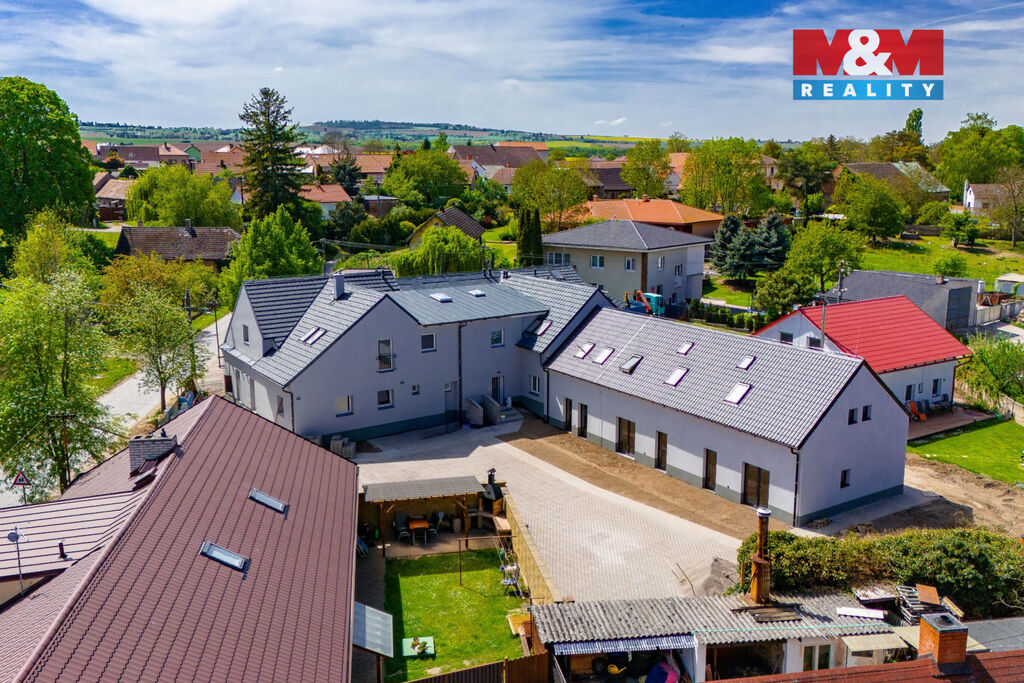 Prodej poslední jednotky, s parametry řadového rodinného domu, v budově postavené v roce 2024 v Libenicích. Byt je dokončen a připraven k užívání. Jedná se o dvoupodlažní byt 3+kk o ploše 87 m2, se samostatným vchodem a vstupem na předzahrádku přímo z obývacího pokoje. Další předzahrádka se nachází u vchodu do bytu. Stavba ze systémových cihel Vapis, zateplena 20 cm vrstvou polystyrenu. Okna české výroby. Dřevěné schodiště vyráběné na míru. V I. NP se nachází prosvětlená vstupní chodba, technická místnost s WC a prostorný obývací pokoj s místem pro kuchyňský kout, v II. NP jsou pak umístěny dvě ložnice s přiznanými dřevěnými prvky střešní konstrukce a koupelna s vanou, dvojumyvadlem a WC. Tato nemovitost je ideální volbou pro ty, kteří hledají útulný a zároveň prakticky řešený domov v kvalitě řadového rodinného domu. K bytu náleží k užívání parkovací místo zdarma. Nízké náklady na bydlení a topení. Lze financovat hypo úvěrem, který zařídíme. Ihned k nastěhování.