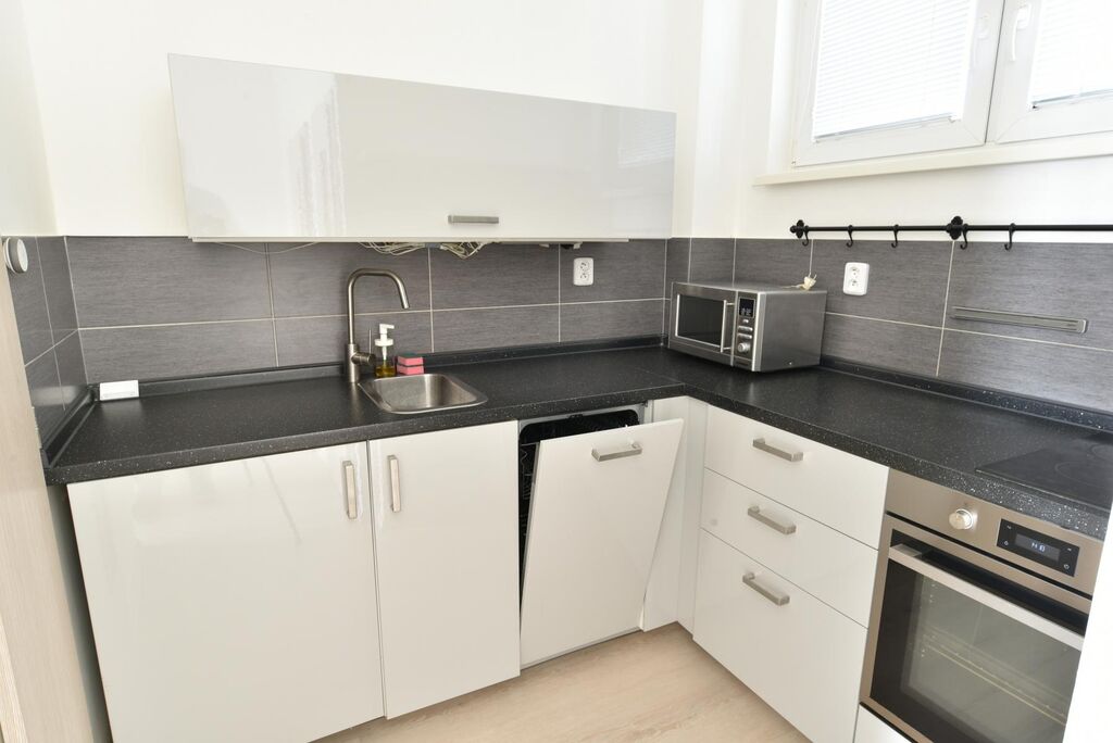 Byt prošel nadstandardní rekonstrukcí a nabízí komfortní a klidné bydlení ve vysokém standardu. Součástí vybavení je nová kuchyňská linka se zabudovanými spotřebiči  lednicí, horkovzdušnou troubou, sklokeramickou varnou deskou a myčkou nádobí. Moderní koupelna se sprchovým koutem je doplněna o pračku. Byt je částečně zařízený a připravený k okamžitému nastěhování.